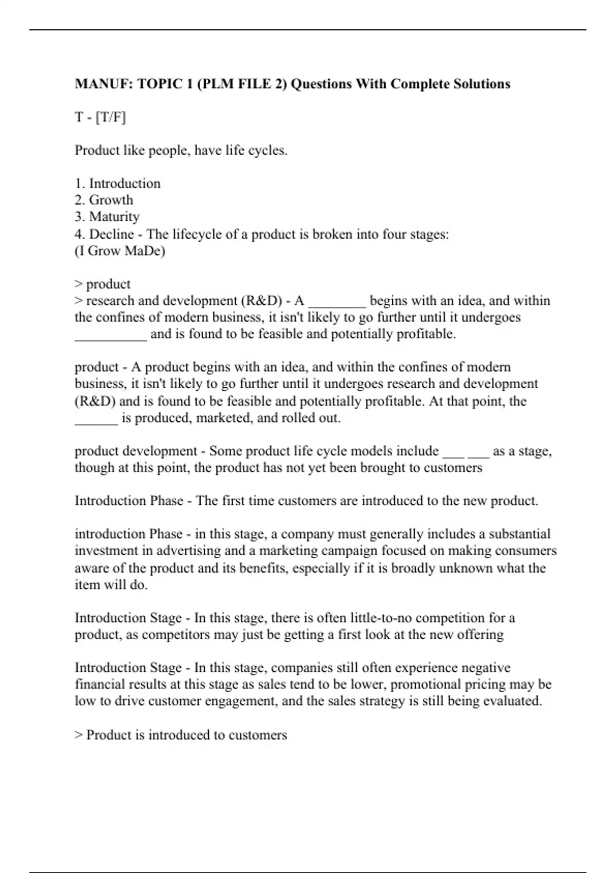 MANUF: TOPIC 1 (PLM FILE 2) Questions With Complete Solutions
