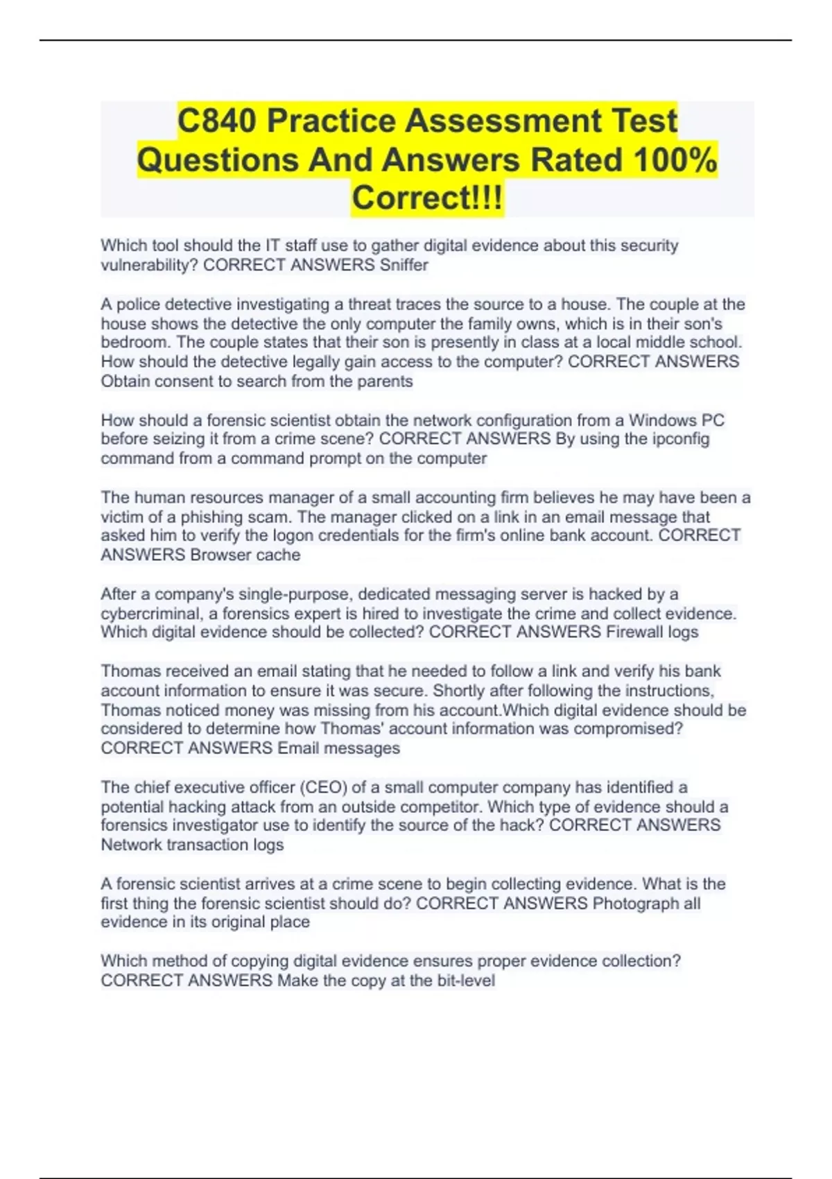 C840 Practice Assessment Test Questions And Answers Rated 100% Correct!!!