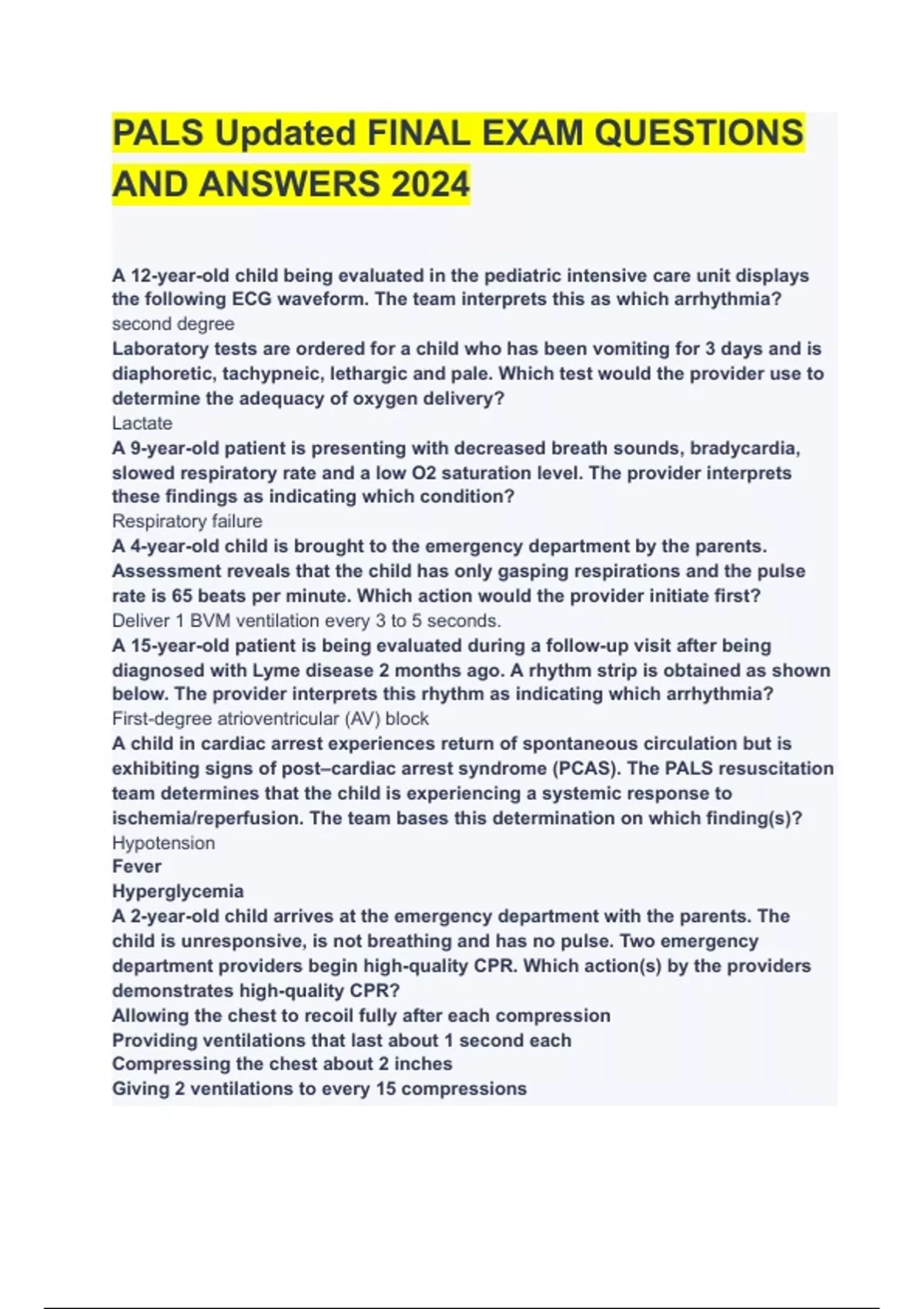 PALS Updated FINAL EXAM QUESTIONS AND ANSWERS 2024