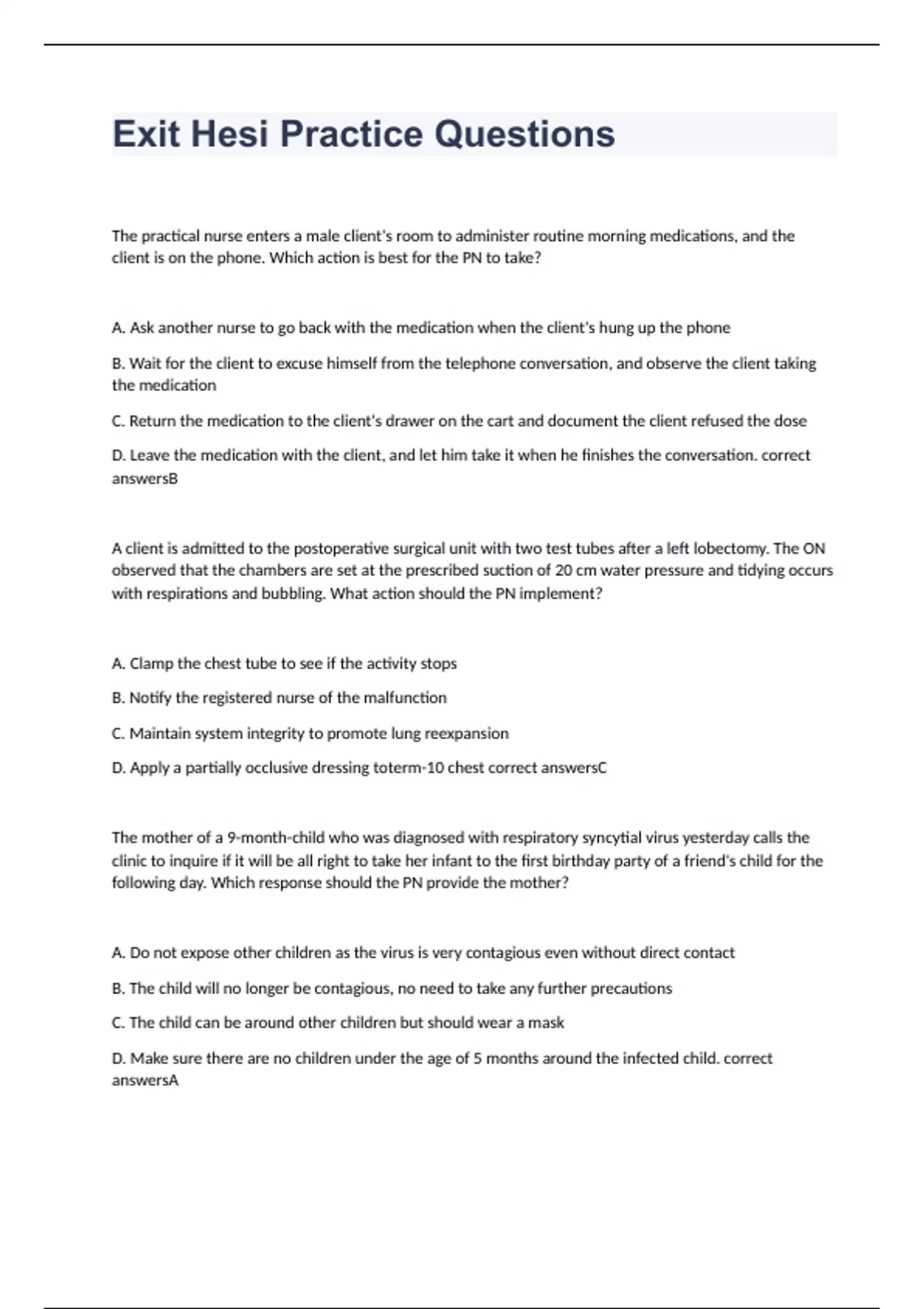 - Exit Hesi Practice Que