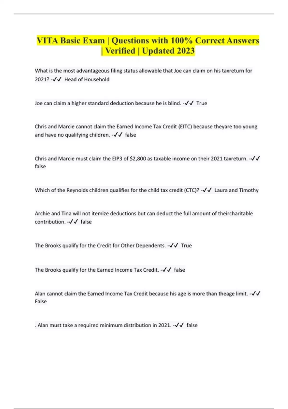 VITA Certification Exams Bundle Questions And Answers (Complete Solution Pack)