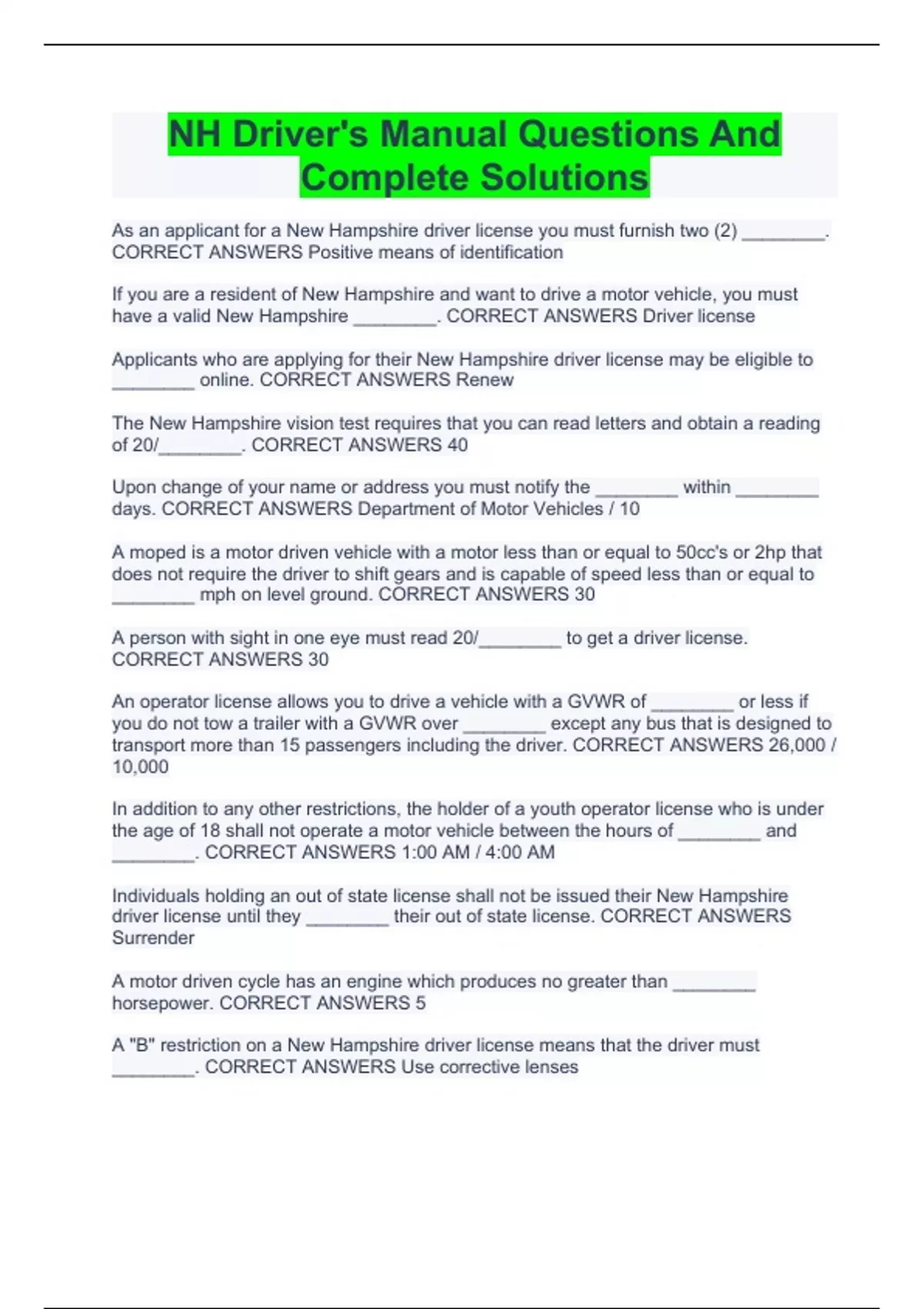 nh drivers manual questions and complete solution