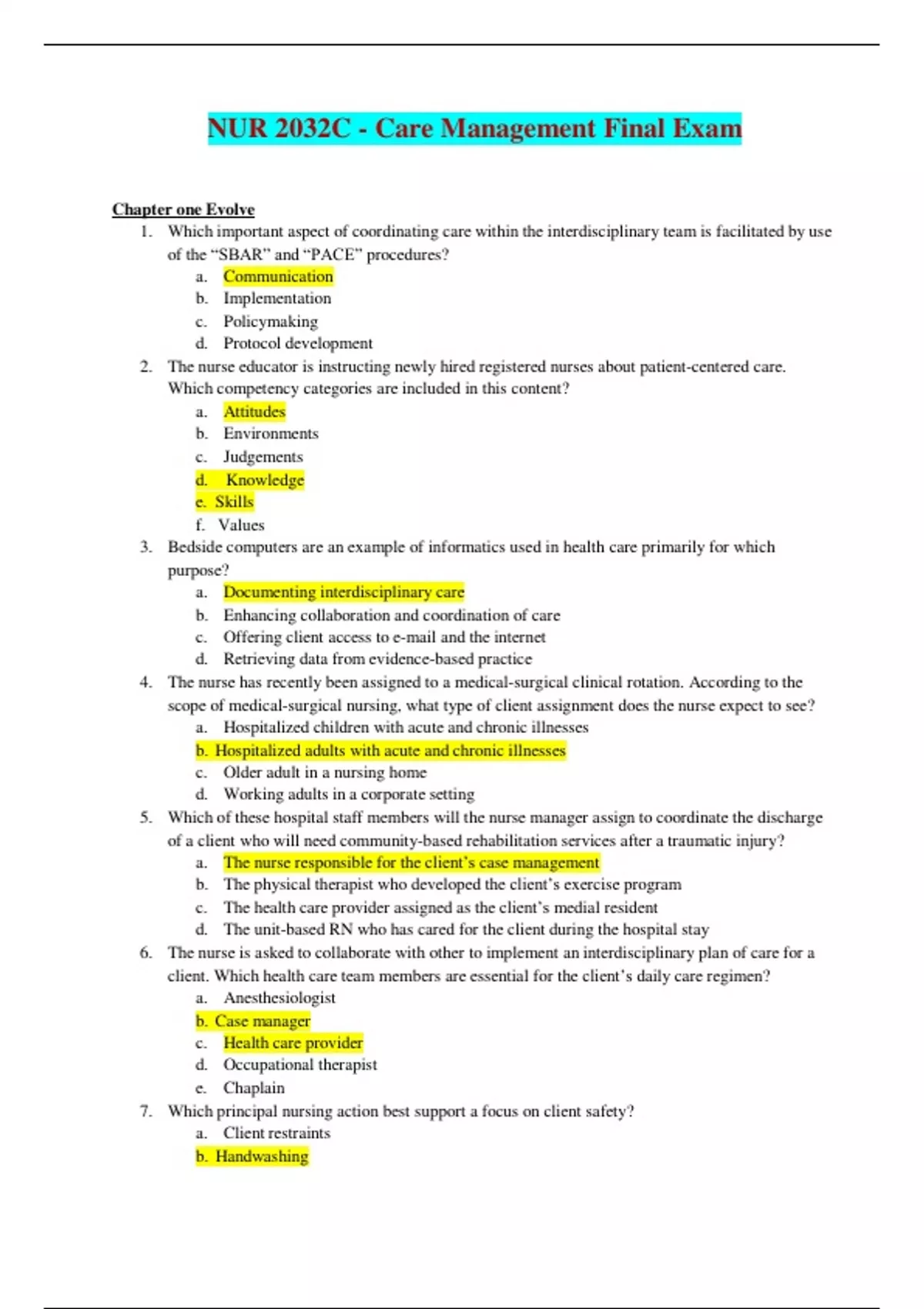 NUR 2032C - Care Management Final Exam (Keiser University)