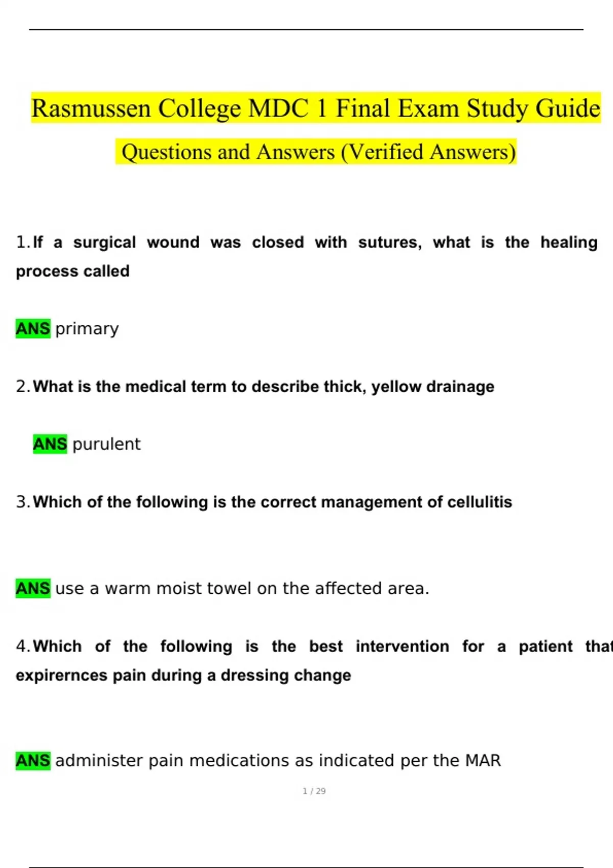 Rasmussen College MDC 1 Final Exam Questions and Answers (2024 / 2025) (Verified Answers)