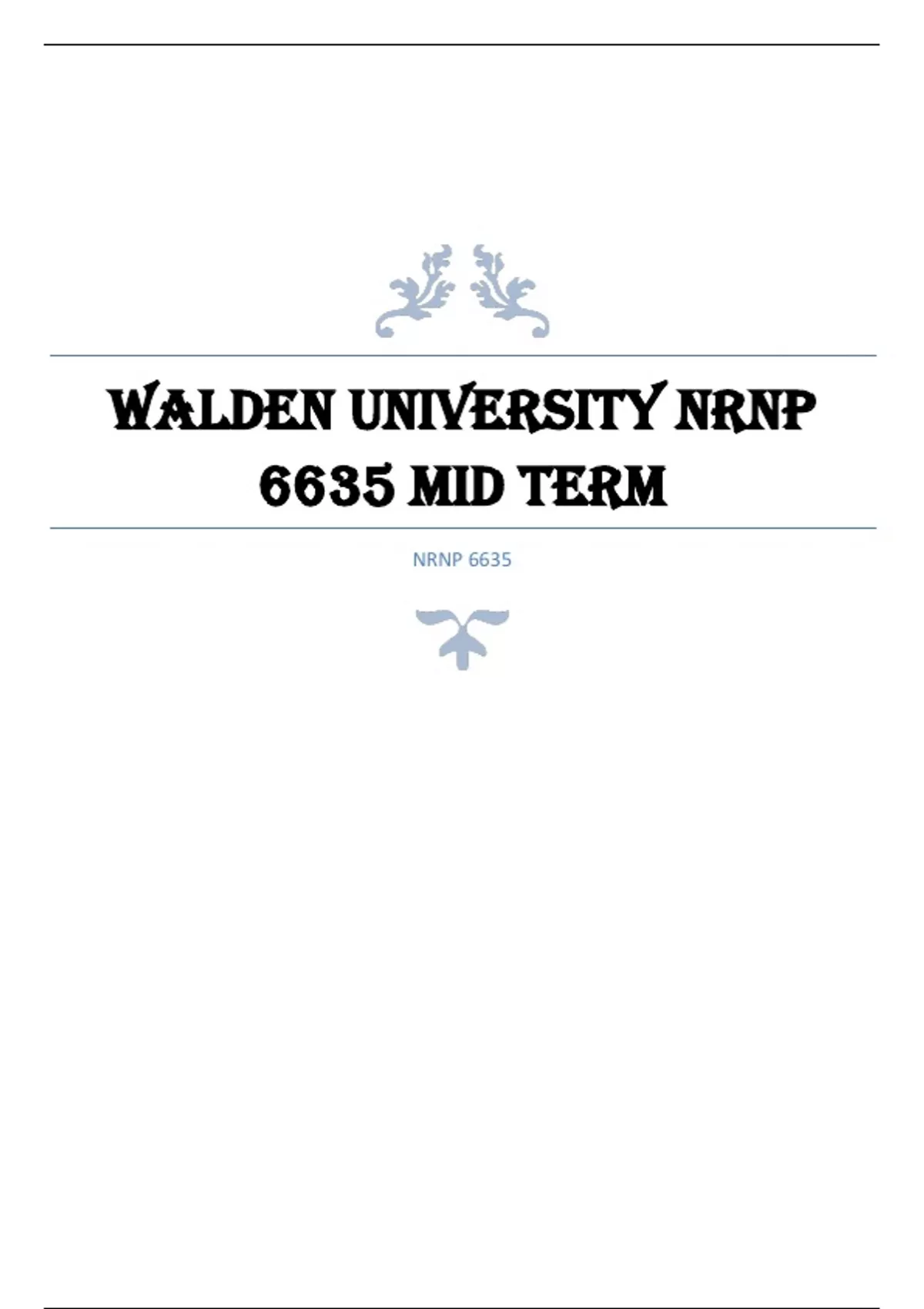 WALDEN UNIVERSITY NRNP 6635 MID TERM Latest Questions and Answers All Correct Study Guide, Download to Score A+ Latest Verified Review 2024 Practice Questions and Answers for Exam Preparation, 100% Correct with Explanations, Highly Recommended, Download t
