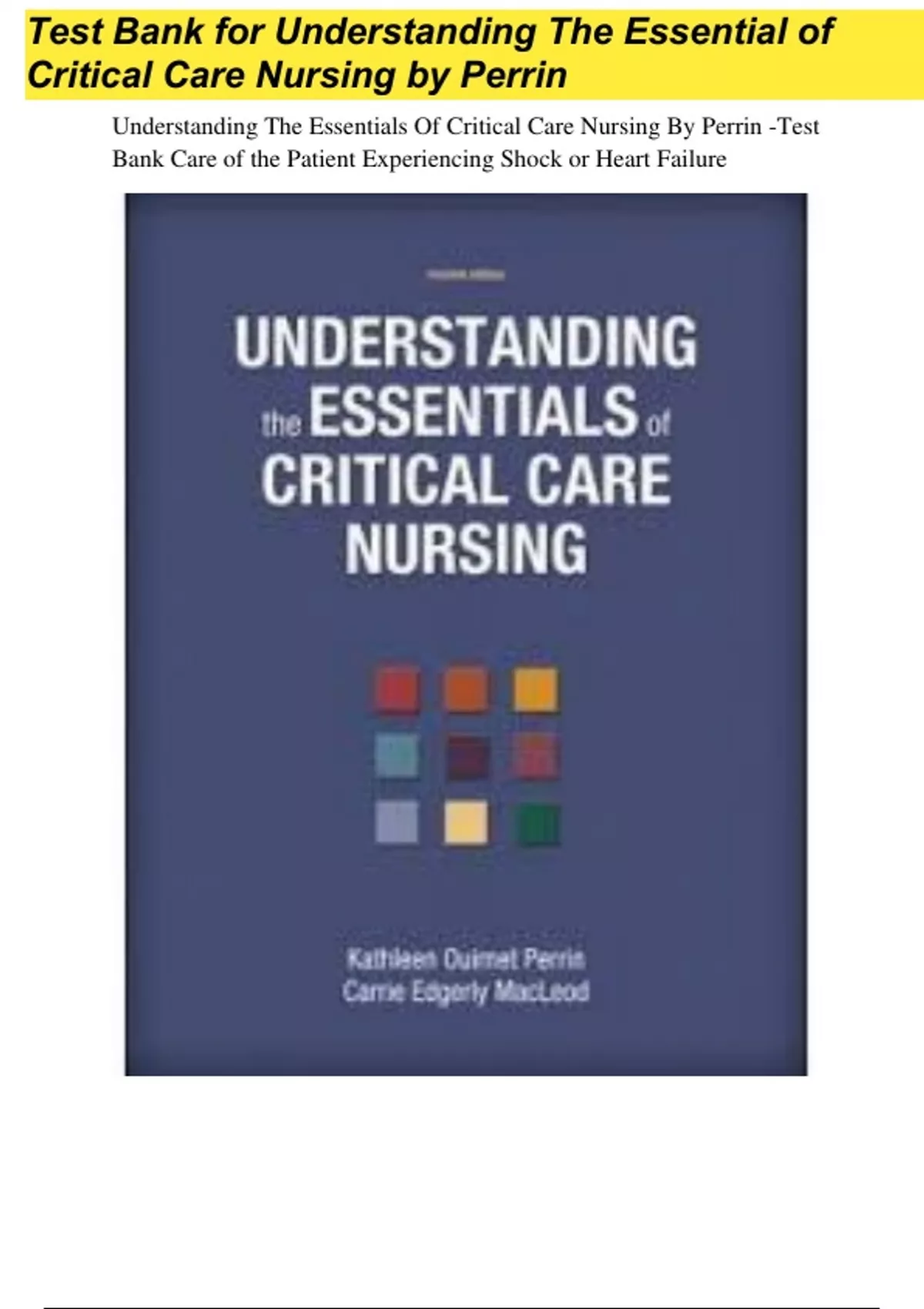 Understanding The Essentials Of Critical Care Nursing By Perrin -Test Bank Care of the Patient Experiencing Shock or Heart Failure