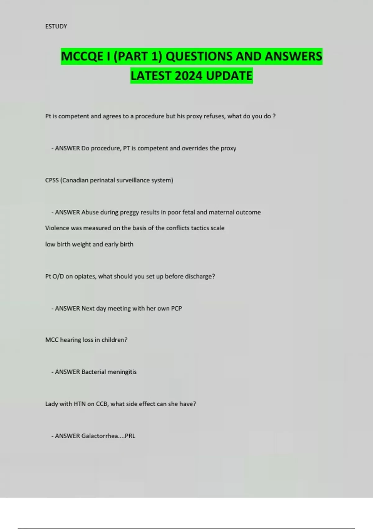 MCCQE I (PART 1) QUESTIONS AND ANSWERS LATEST 2024 UPDATE