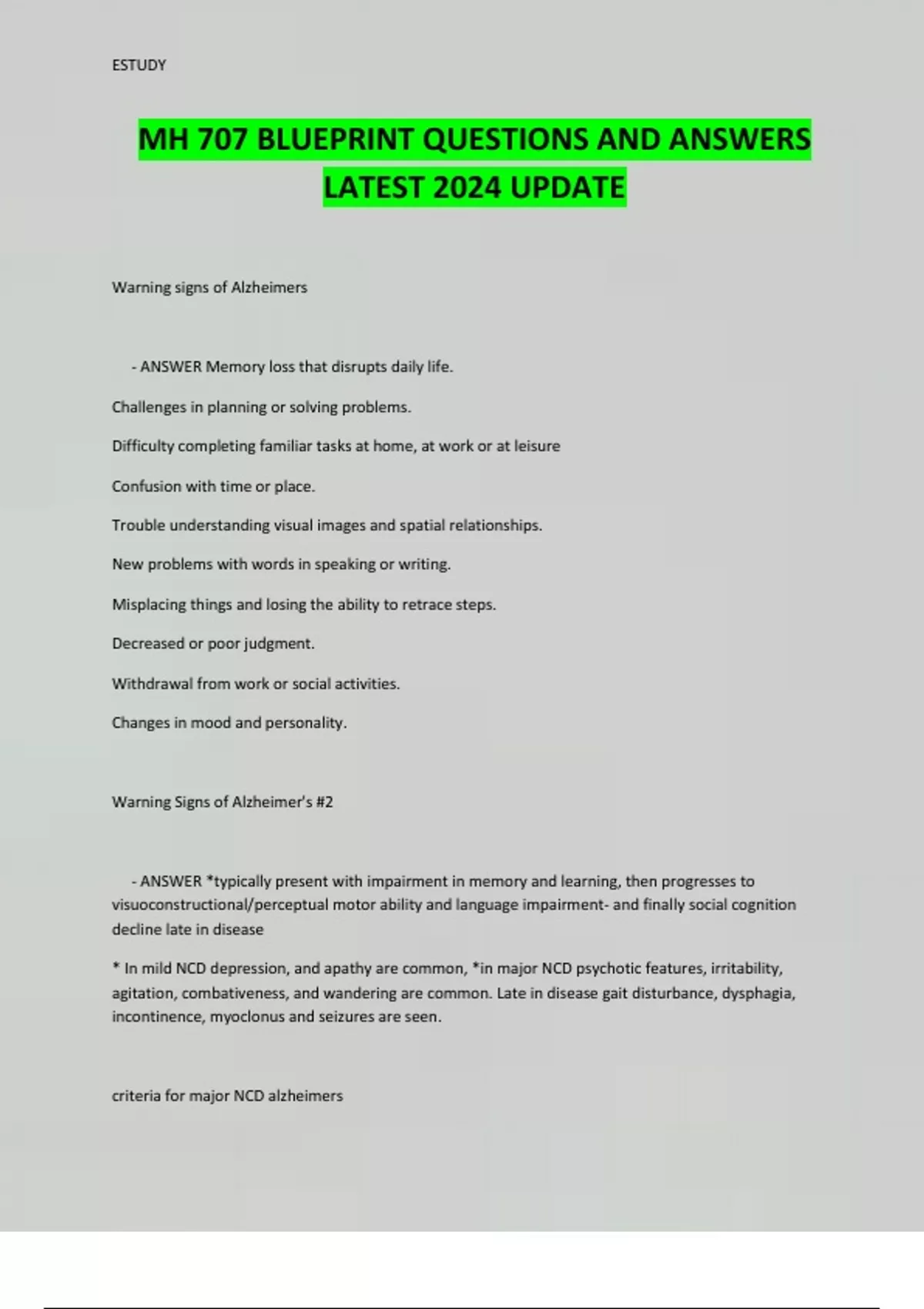 MH 707 BLUEPRINT QUESTIONS AND ANSWERS LATEST 2024 UPDATE