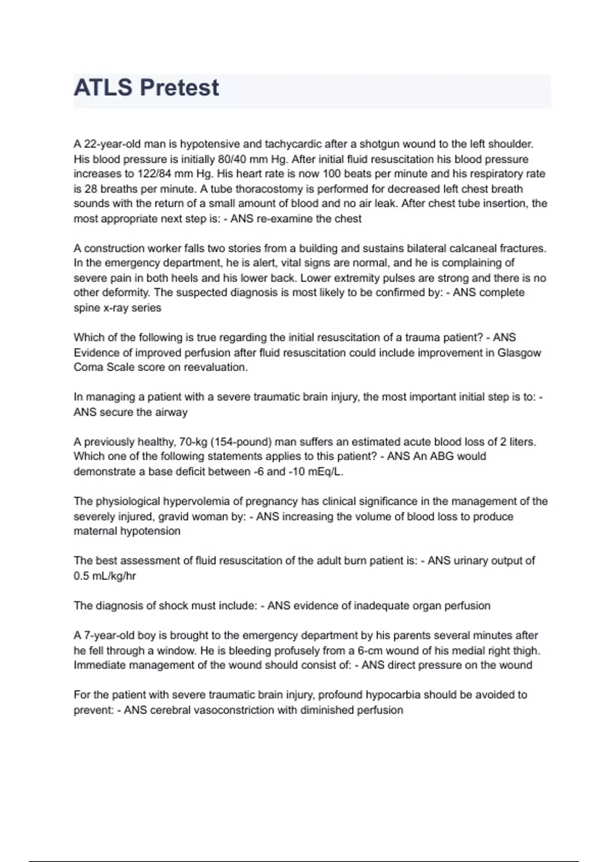 ATLS Pretest Exam 2024 Questions & Completed Solutions Already A+.