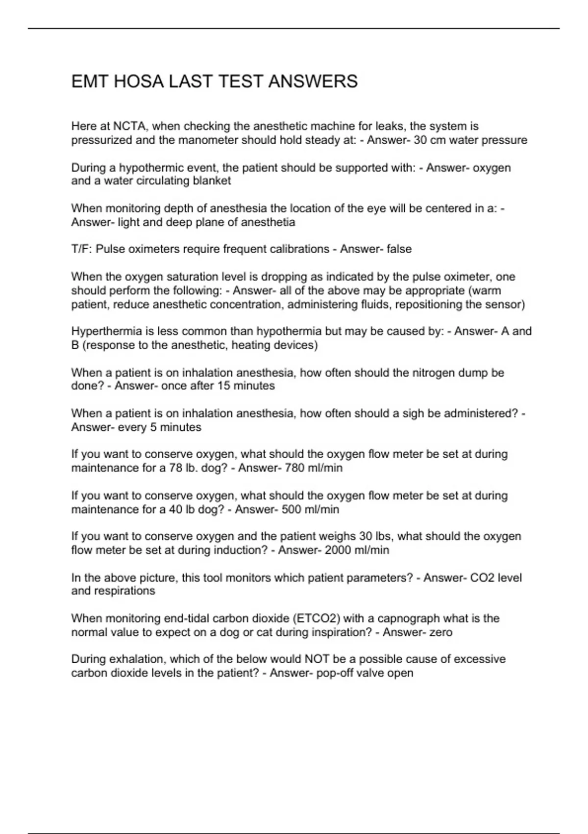 EMT HOSA LAST TEST ANSWERS
