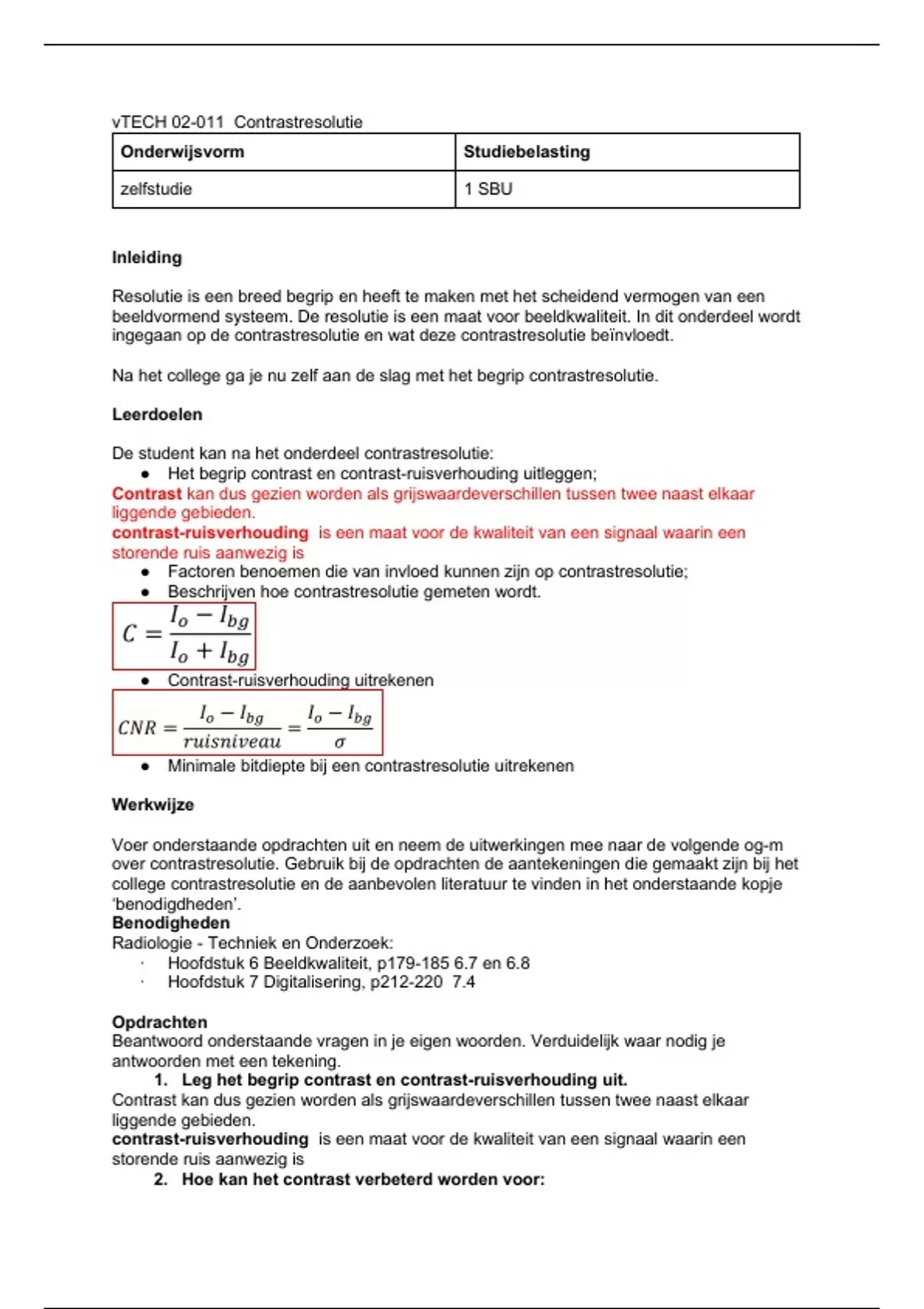 1. Leg het begrip contrast en contrast-ruisverhouding uit.