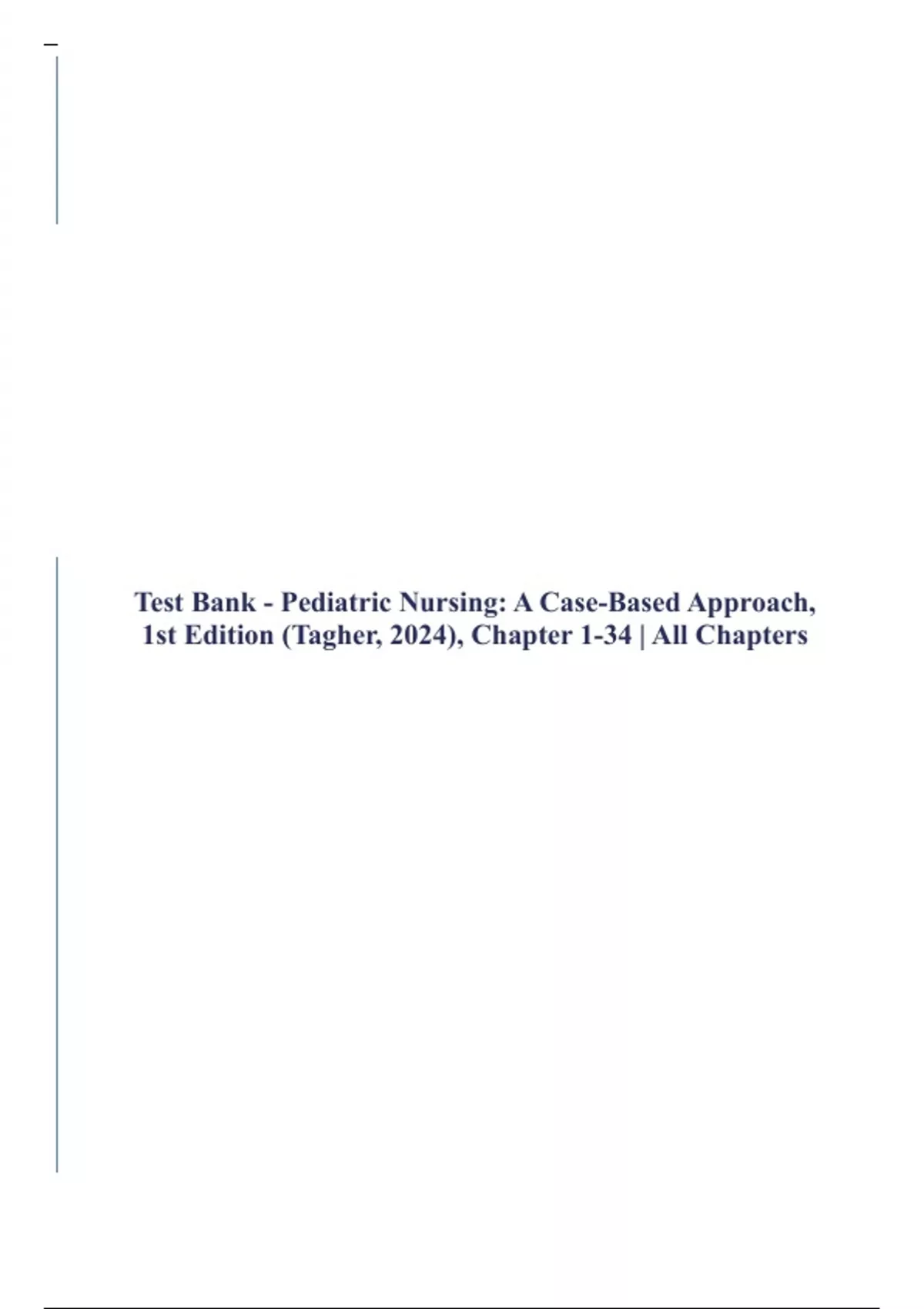 Test Bank - Pediatric Nursing: A Case-Based Approach, 1st Edition (Tagher, 2024), Chapter 1-33| All Chapters
