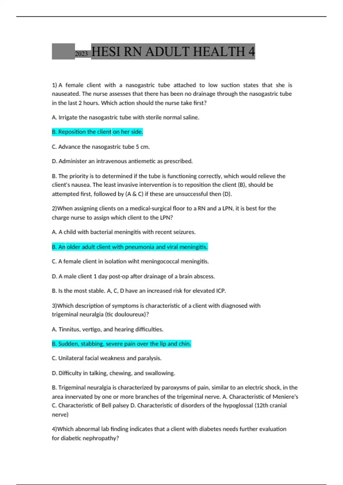 2023 HESI RN ADULT HEALTH 4