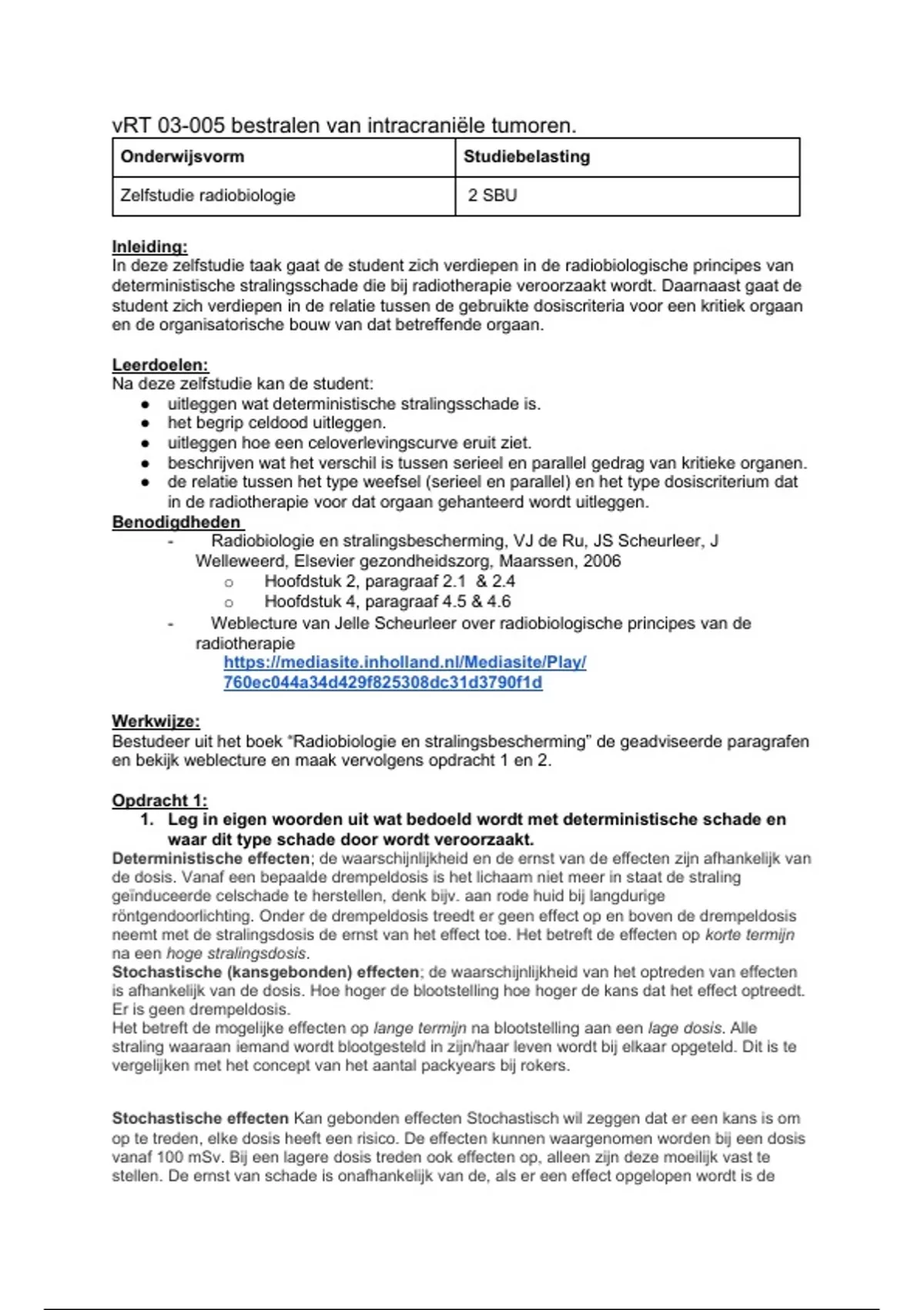 In deze zelfstudie taak gaat de student zich verdiepen in de radiobiologische principes van