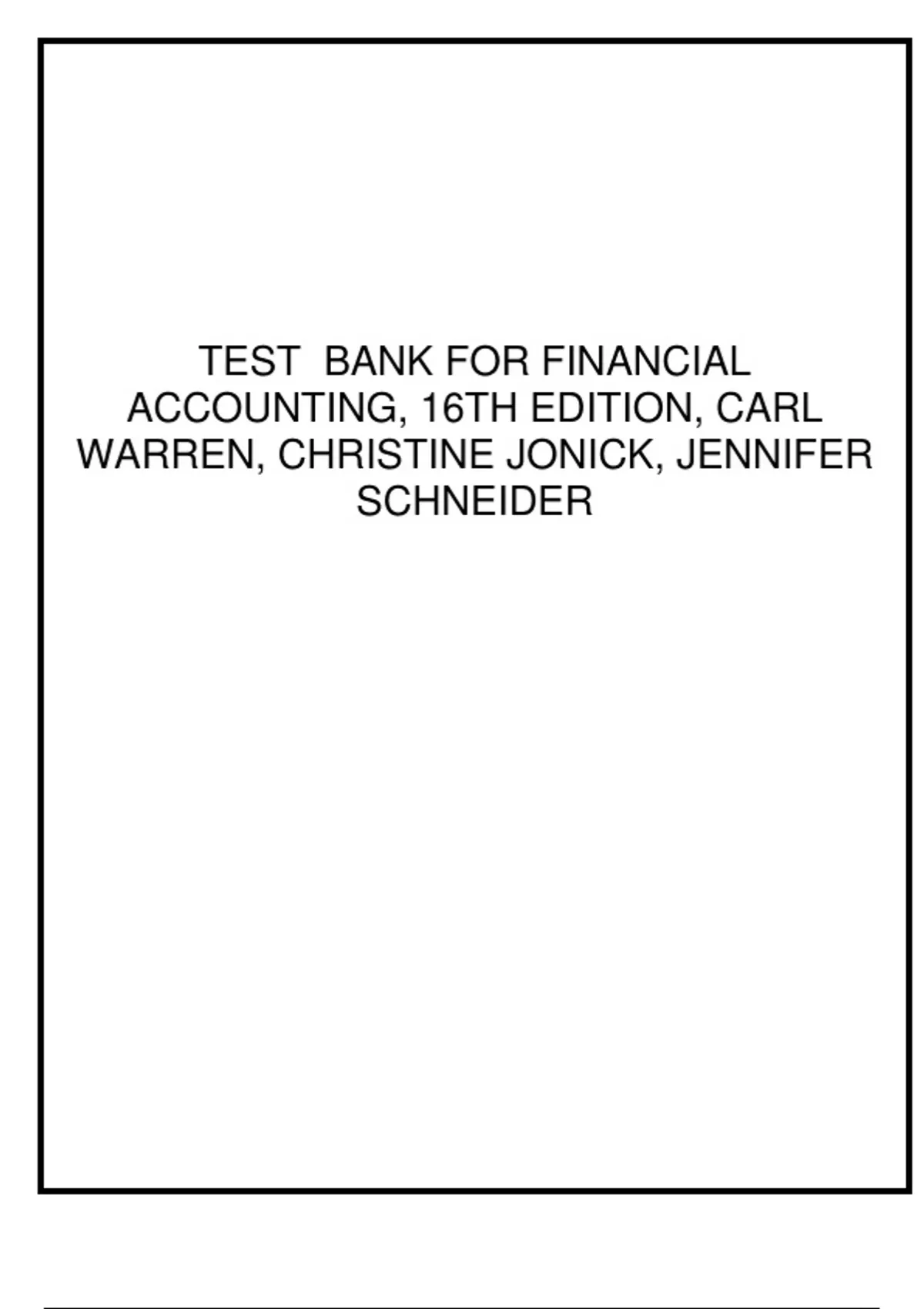 TEST BANK FOR FINANCIAL ACCOUNTING, 16TH EDITION, CARL WARREN, CHRISTINE JONICK, JENNIFER SCHNEIDER