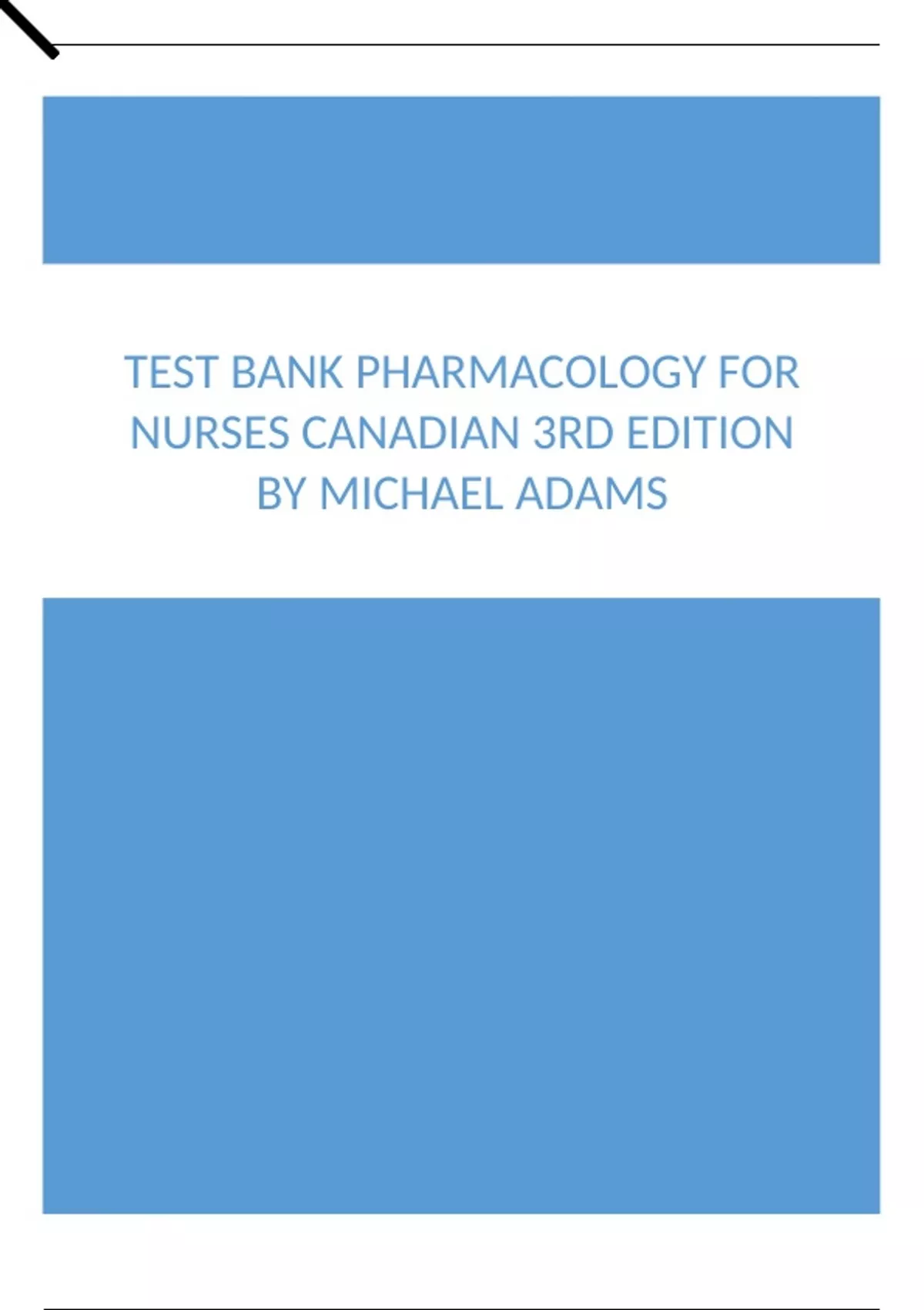 Test Bank Pharmacology for Nurses Canadian 3rd Edition by Michael Adams