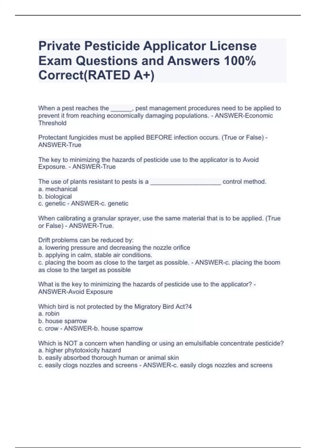Private Pesticide Applicator License Exam Questions and Answers 100% Correct(RATED A+) Private Pesticide Applicator License Exam Questions and Answers 100% Correct(RATED A+) Private Pesticide Applicator License Exam Questions and Answers 100% Correct(RATED A+) Private Pesticide Applicator License Exam Questions and Answers 100% Correct(RATED A+) Private Pesticide Applicator License Exam Questions and Answers 100% Correct(RATED A+) Private Pesticide Applicator License Exam Questions and Answers 100% Correct(RATED A+) Private Pesticide Applicator License Exam Questions and Answers 100% Correct(RATED A+) Private Pesticide Applicator License Exam Questions and Answers 100% Correct(RATED A+) Private Pesticide Applicator License Exam Questions and Answers 100% Correct(RATED A+) Private Pesticide Applicator License Exam Questions and Answers 100% Correct(RATED A+) Private Pesticide Applicator License Exam Questions and Answers 100% Correct(RATED A+) Private Pesticide Applicator License Exam Questions and Answers 100% Correct(RATED A+) Private Pesticide Applicator License Exam Questions and Answers 100% Correct(RATED A+)
