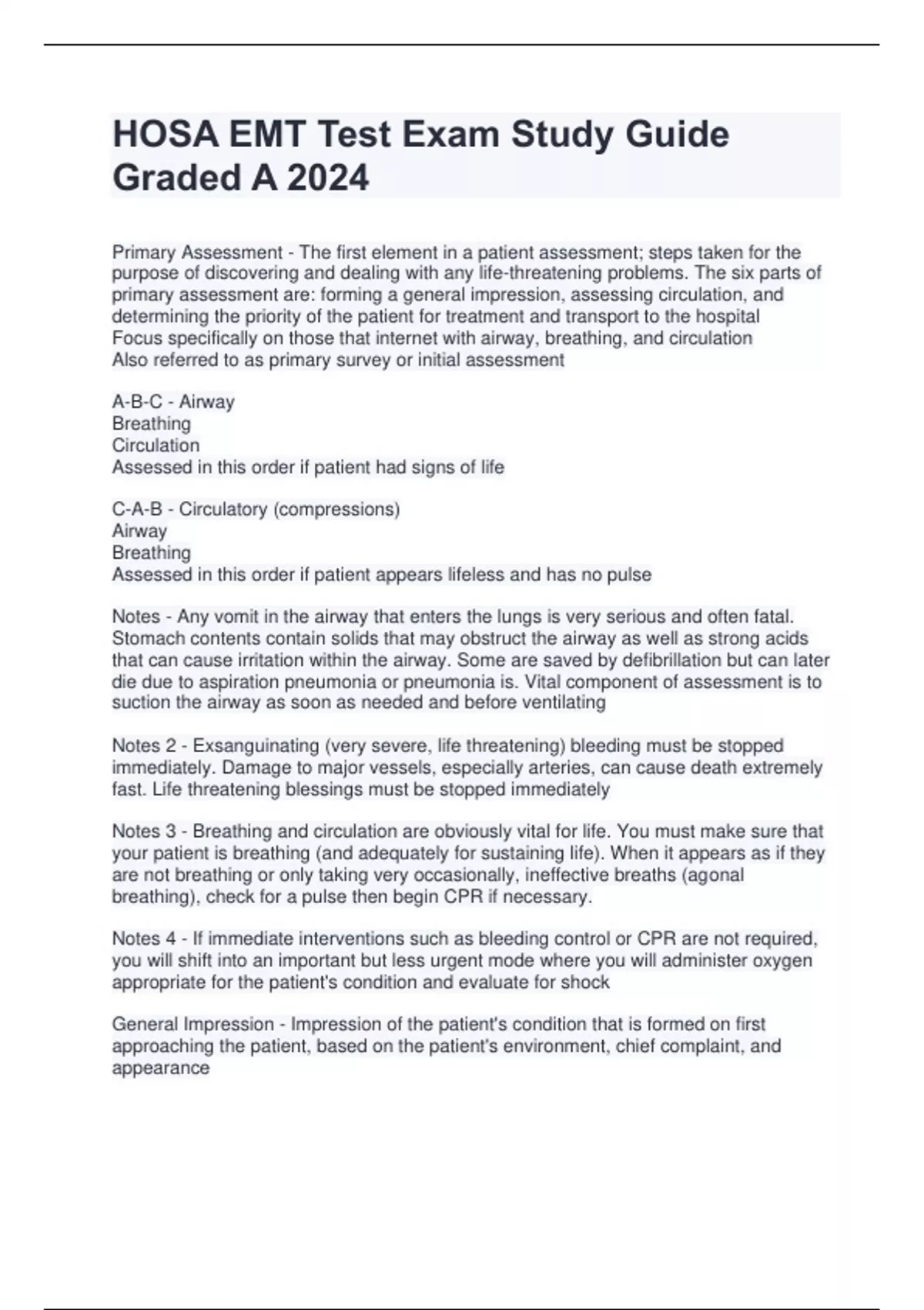 HOSA EMT Test Exam Study Guide Graded A 2024