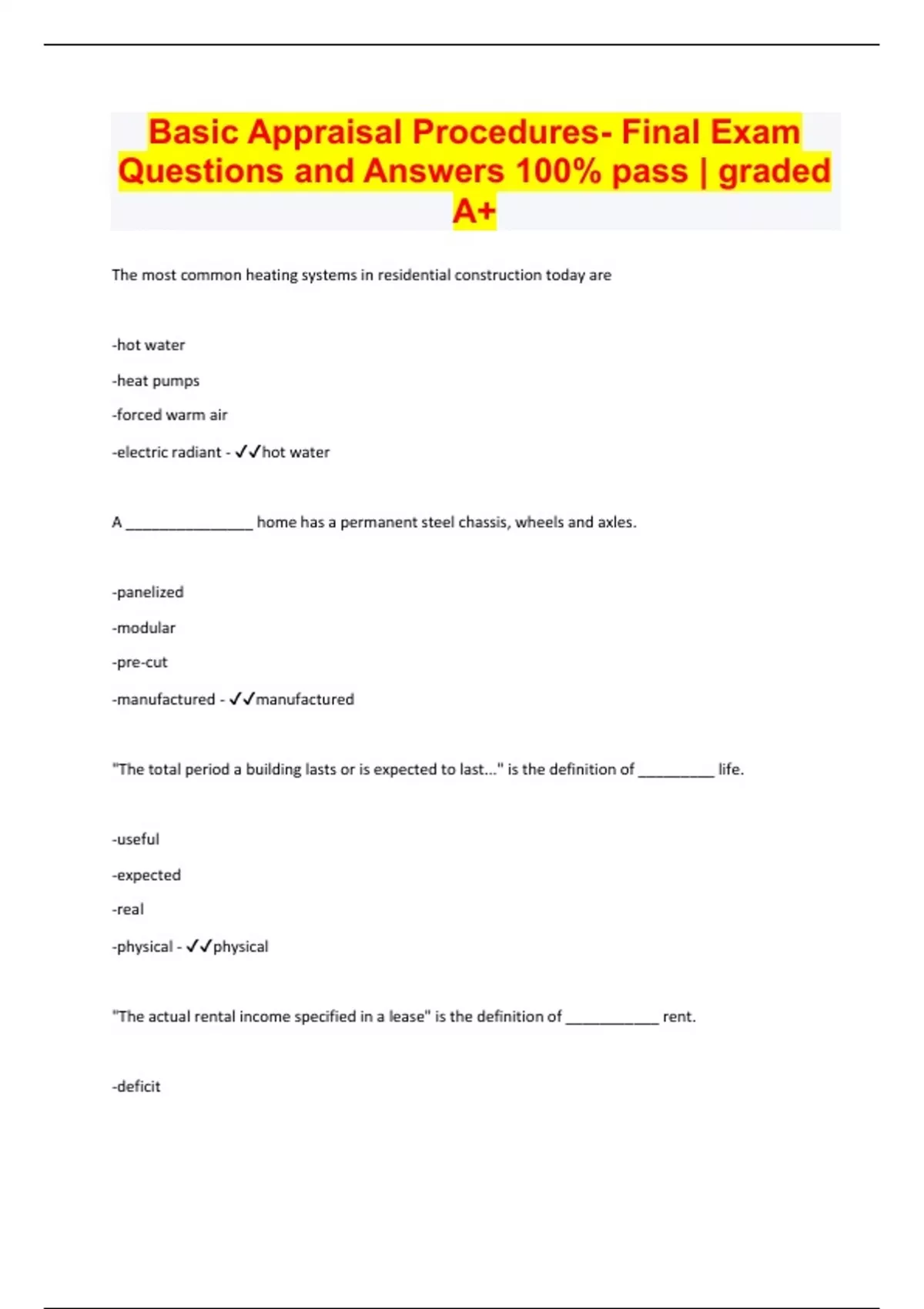 Basic Appraisal Procedures- Final Exam Questions and Answers 100% pass | graded A+