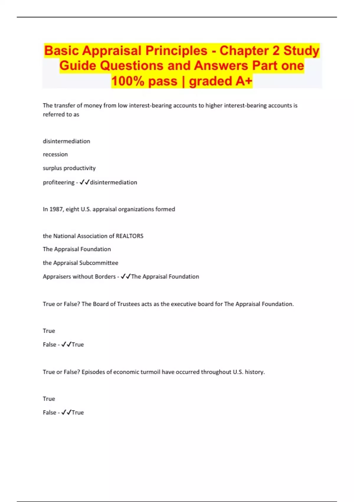 Basic Appraisal Principles - Chapter 2 Study Guide Questions and Answers Part one 100% pass | graded A+
