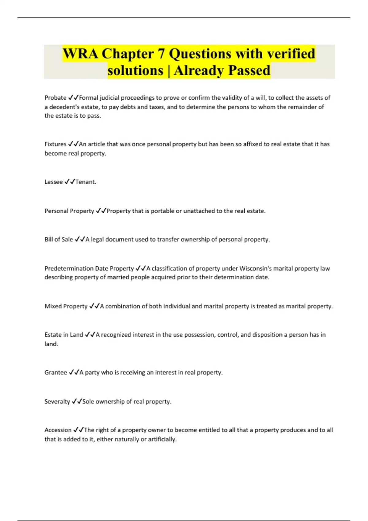 WRA Chapter 7 Questions with verified solutions | Already Passed