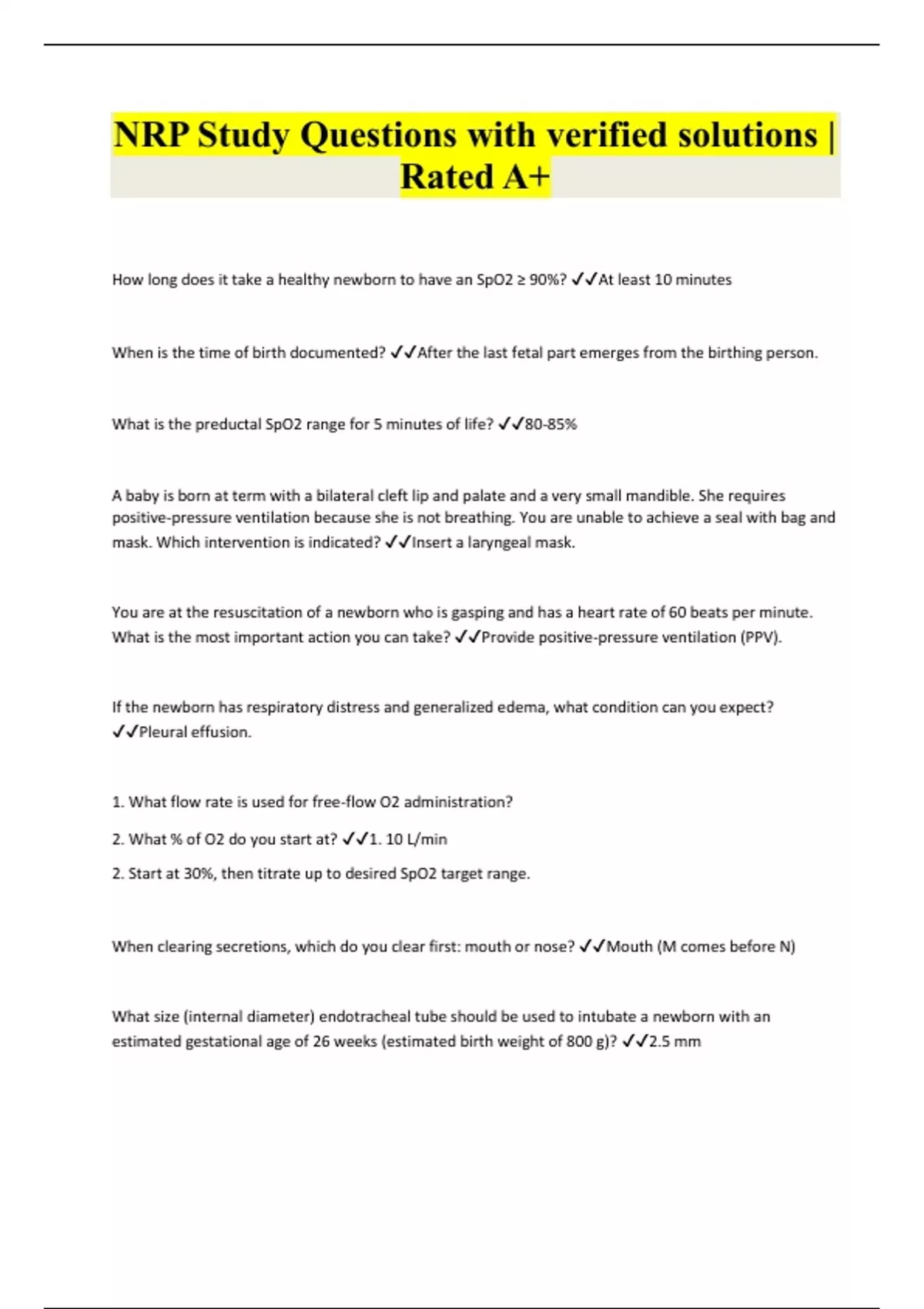 NRP Study Questions with verified solutions | Rated A+