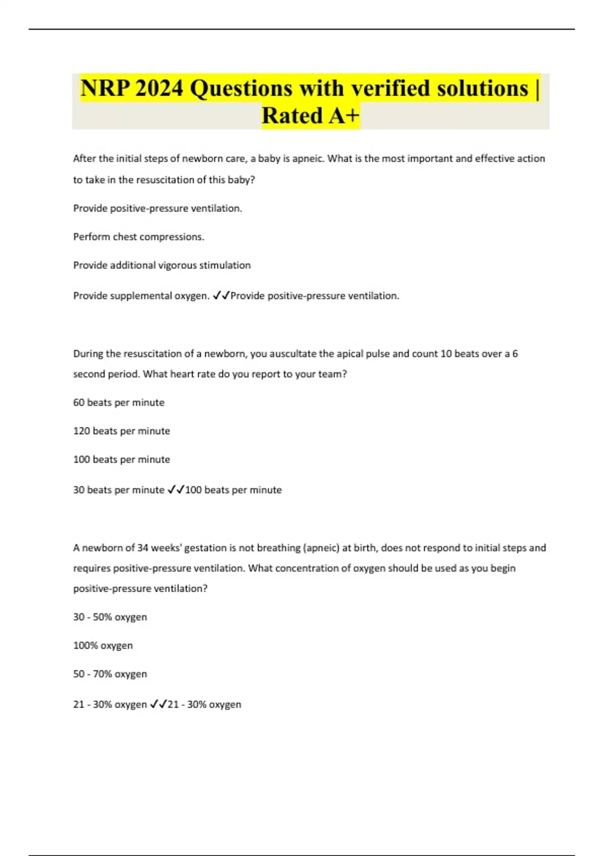 NRP 2024 Questions with verified solutions | Rated A+