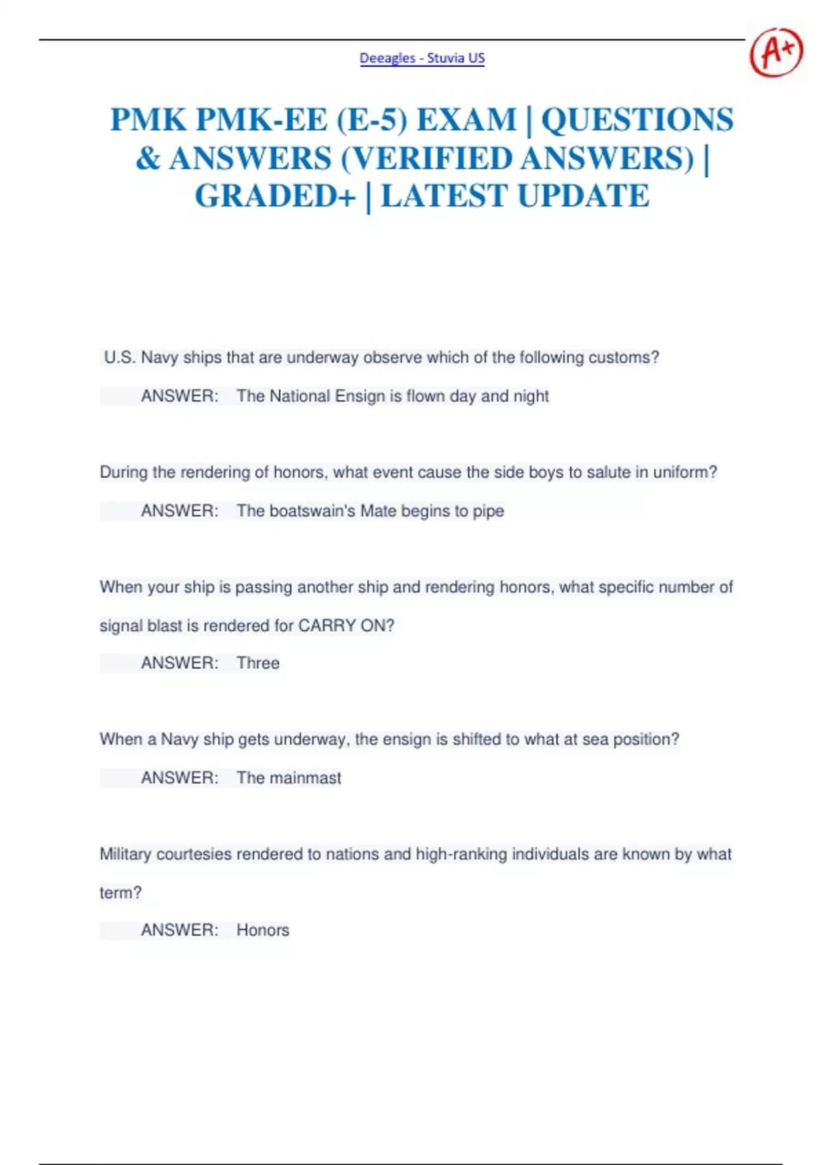 PMK PMK-EE (E-5) EXAM | QUESTIONS & ANSWERS (VERIFIED ANSWERS) | GRADED+ | LATEST UPDATE