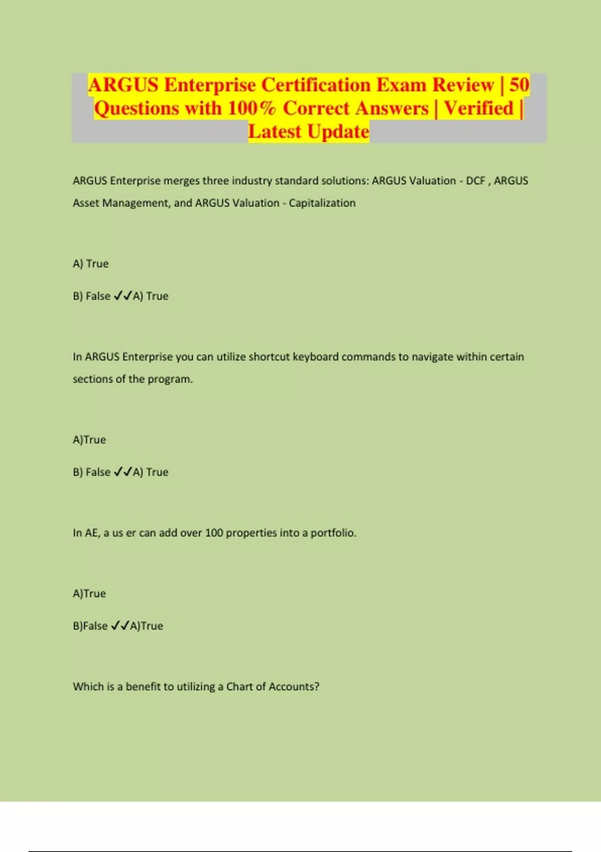 ARGUS Enterprise Certification Exam Review | 50 Questions with 100% Correct Answers | Verified | Latest Update