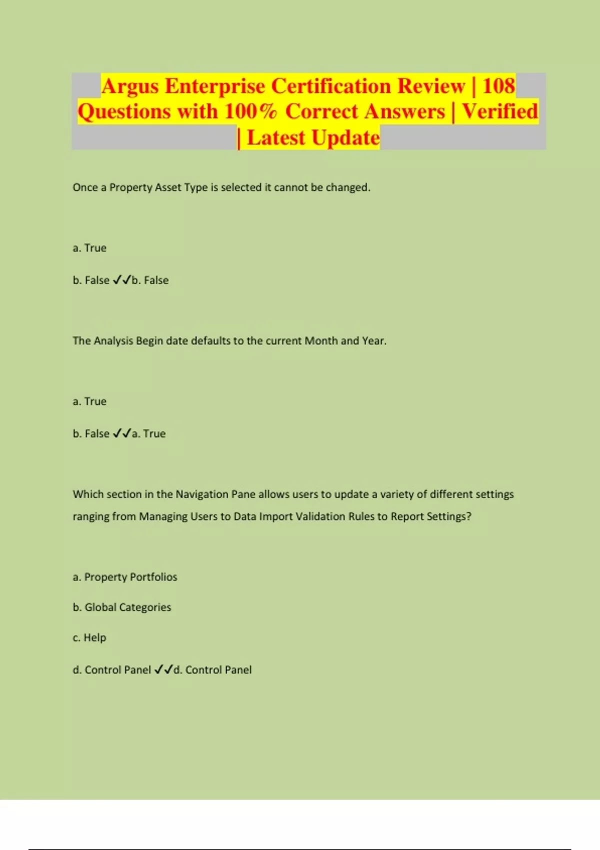 Argus Enterprise Certification Review | 108 Questions with 100% Correct Answers | Verified | Latest Update