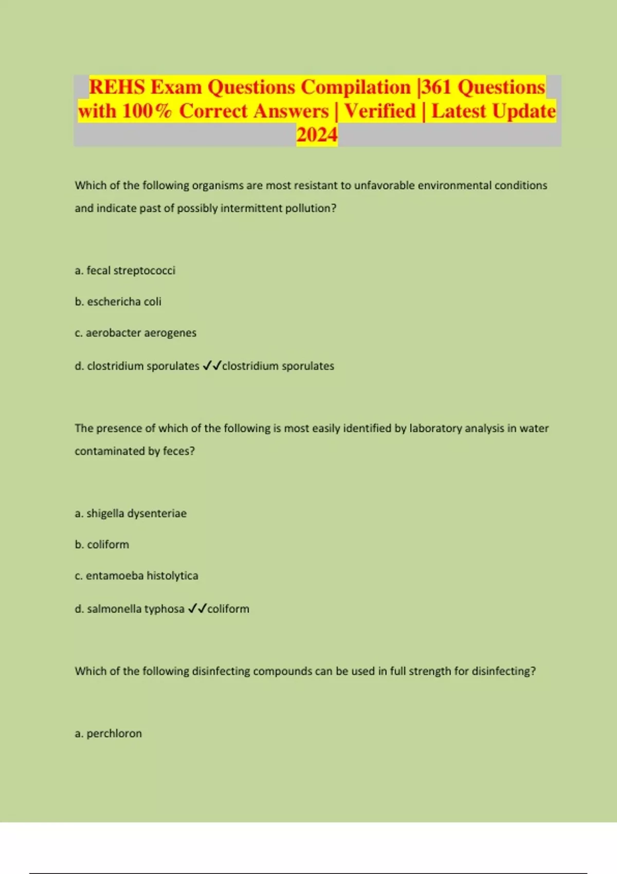 REHS Exam Questions Compilation |361 Questions with 100% Correct Answers | Verified | Latest Update 2024