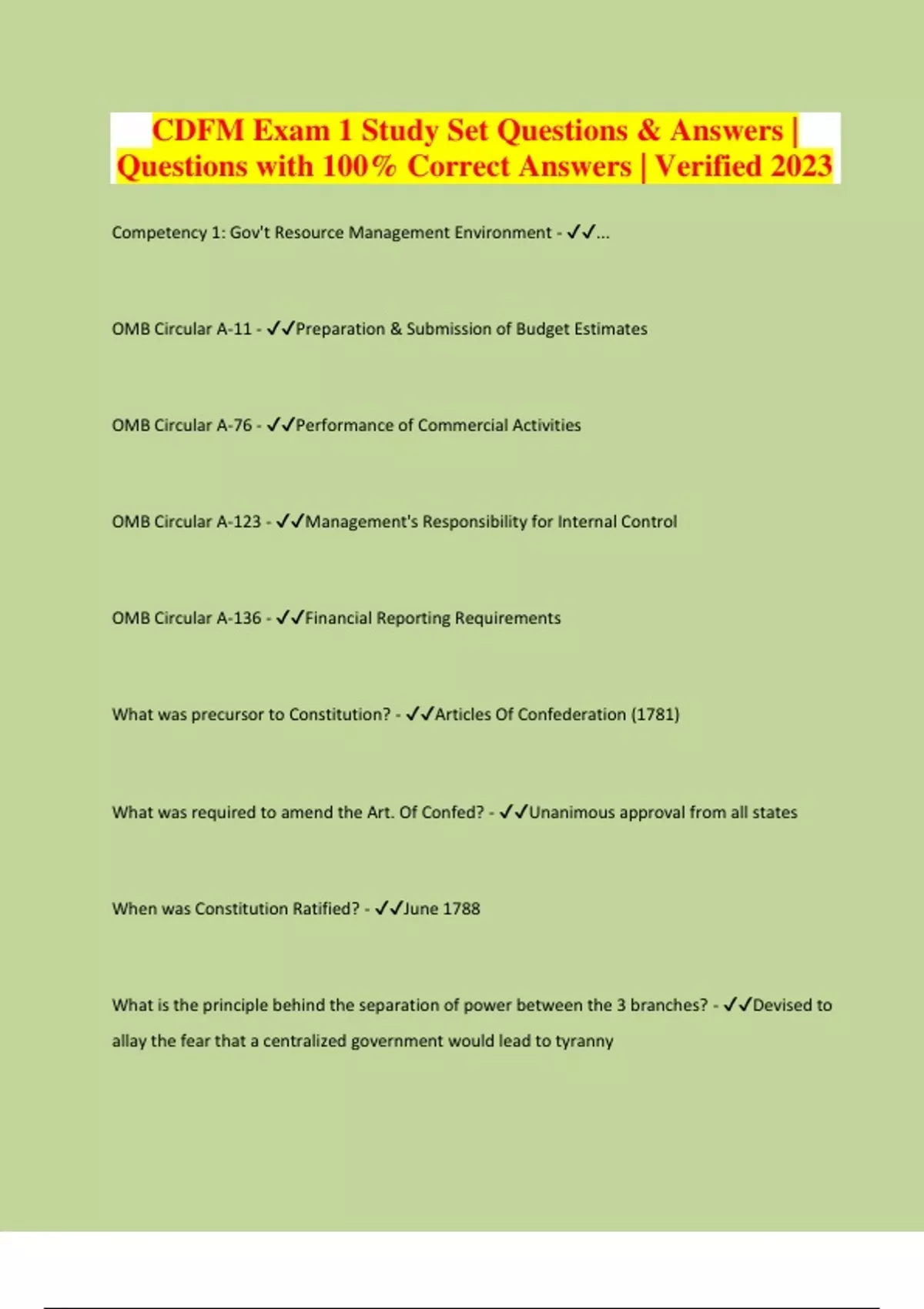 CDFM Exam 1 Study Set Questions & Answers | Questions with 100% Correct Answers | Verified 2023