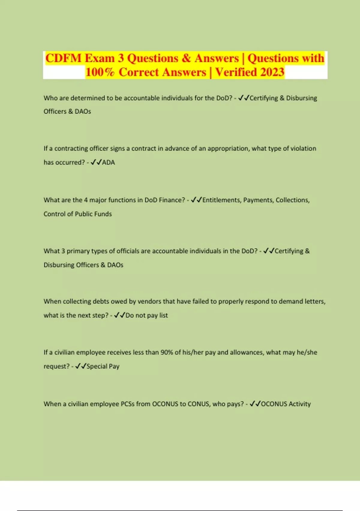CDFM Exam 3 Questions & Answers | Questions with 100% Correct Answers | Verified 2023