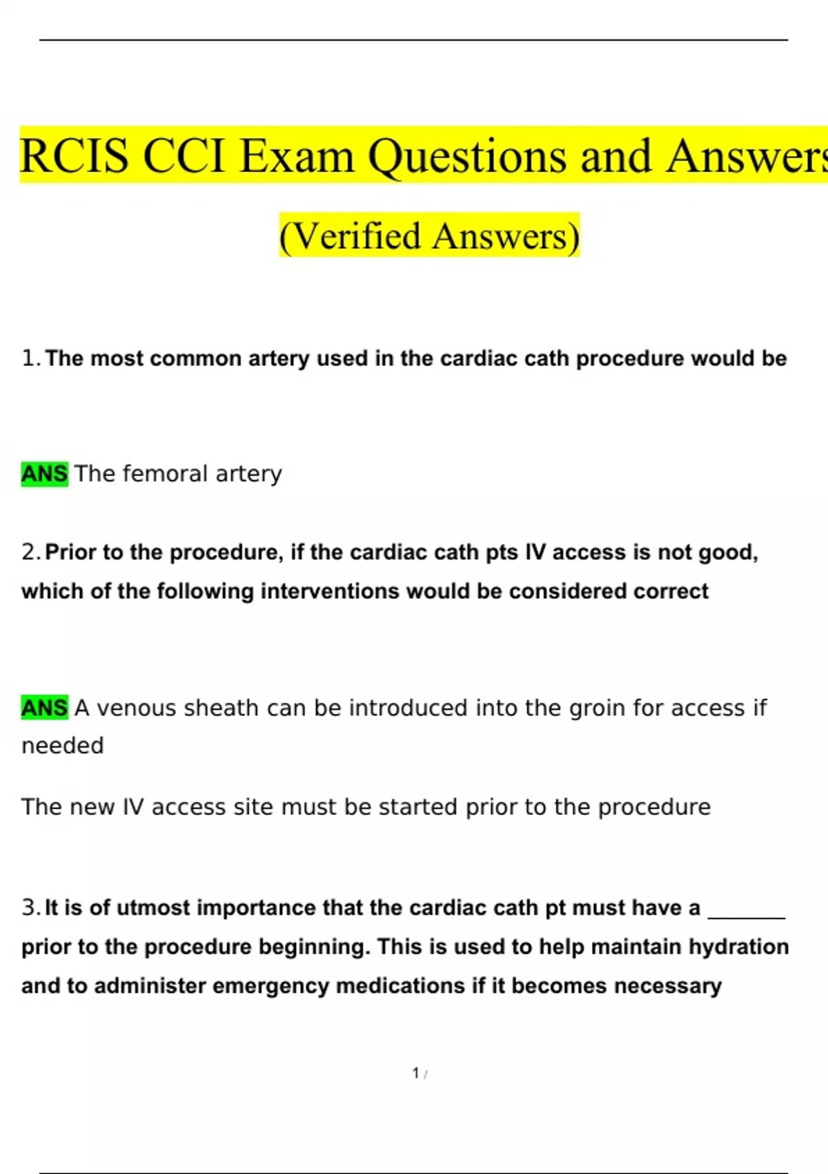 1 / RCIS CCI Exam Questions and Answers