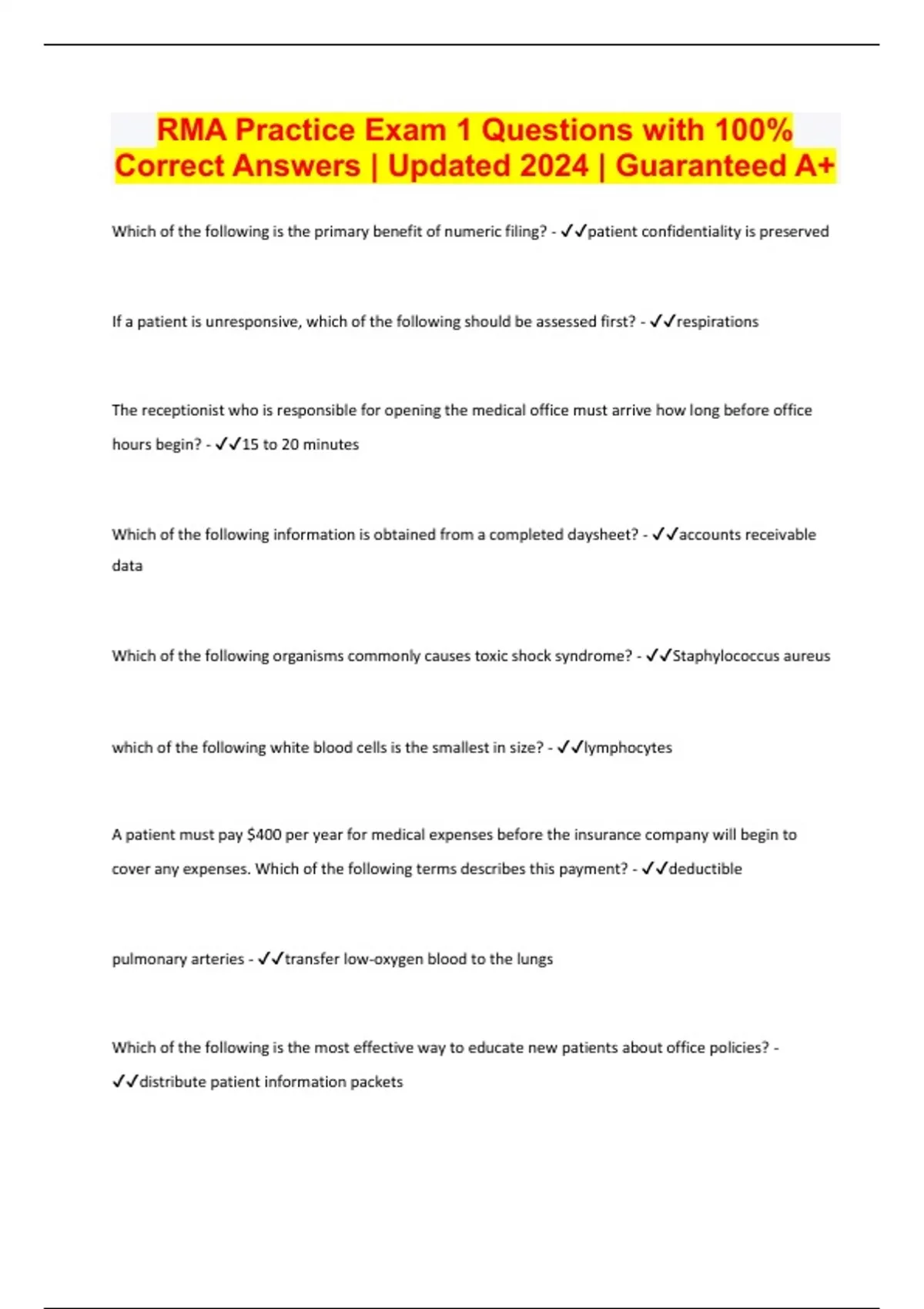 RMA Practice Exam 1 Questions with 100% Correct Answers | Updated 2024 | Guaranteed A+