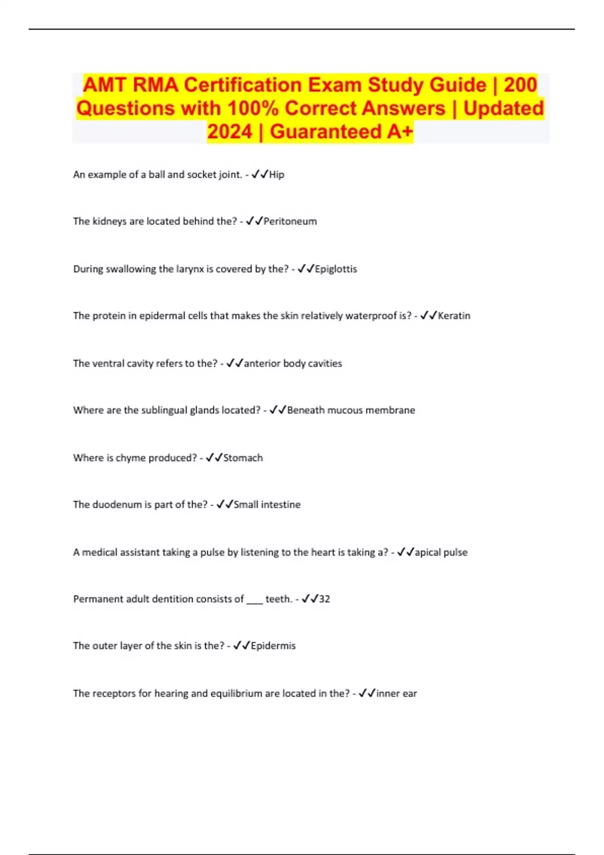 AMT RMA Certification Exam Study Guide | 200 Questions with 100% Correct Answers | Updated 2024 | Guaranteed A+