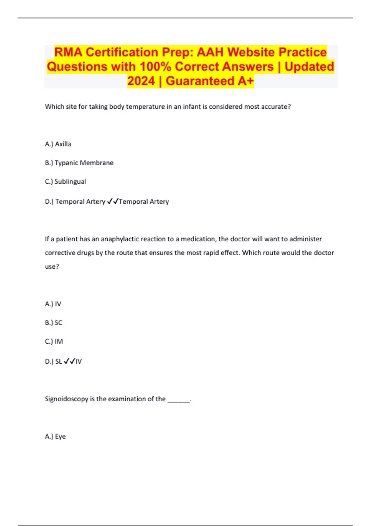 RMA Certification Prep: AAH Website Practice Questions with 100% Correct Answers | Updated 2024 | Guaranteed A+