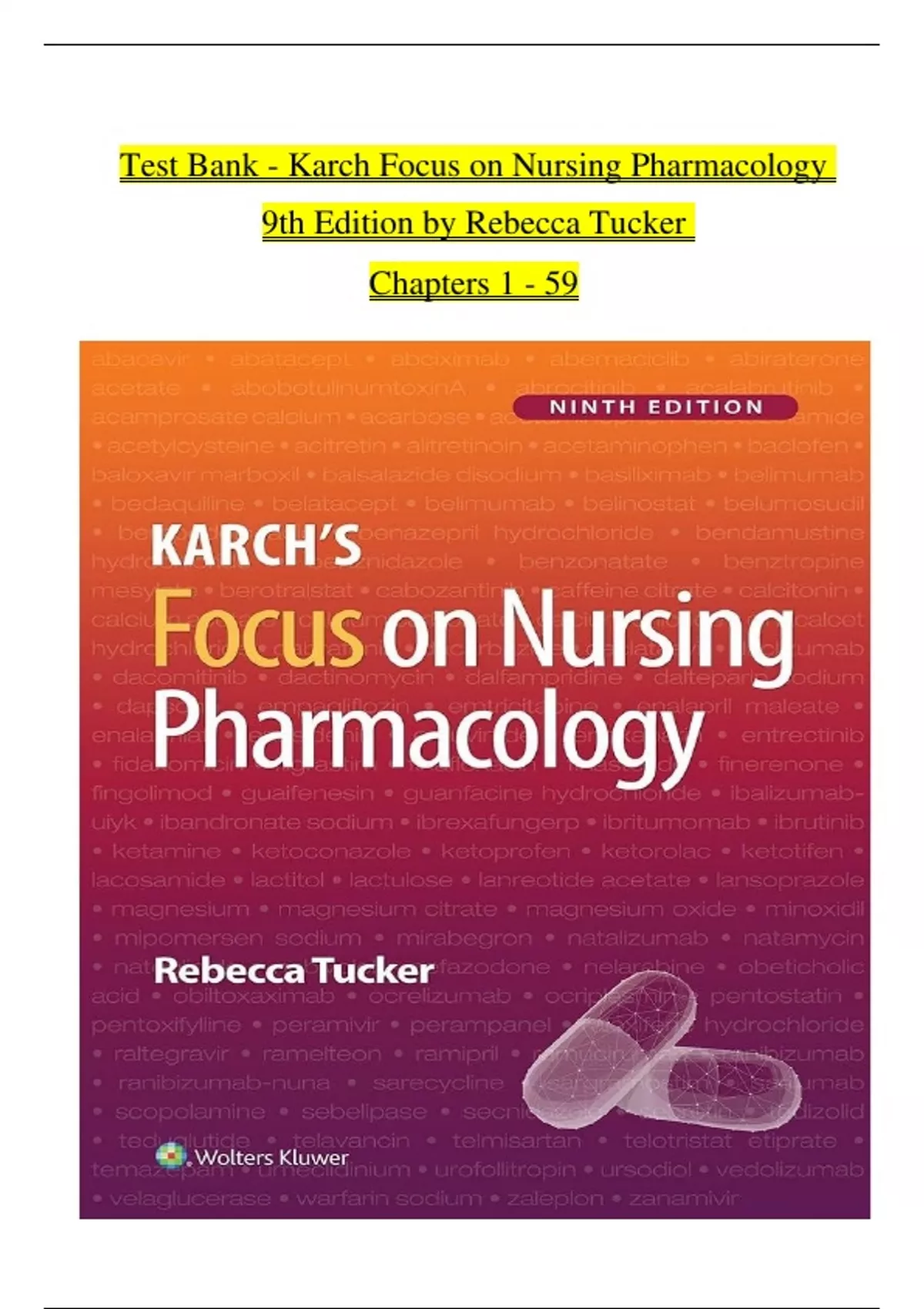 TEST BANK For Karch Focus on Nursing Pharmacology, 9th Edition by Rebecca Tucker, Verified Chapters 1 - 59, Complete Newest Version Karch Focus on Nursing Pharmacology, 9th Edition by Rebecca Tucker Karch Focus on Nursing Pharmacology, 9th Edition