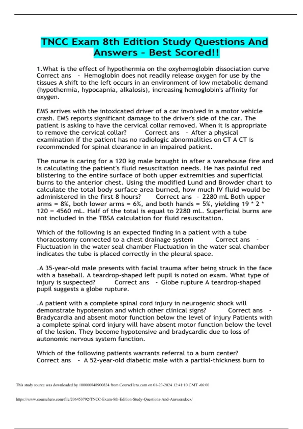 TNCC Exam 8th Edition Study Questions And Answers – Best Scored!!