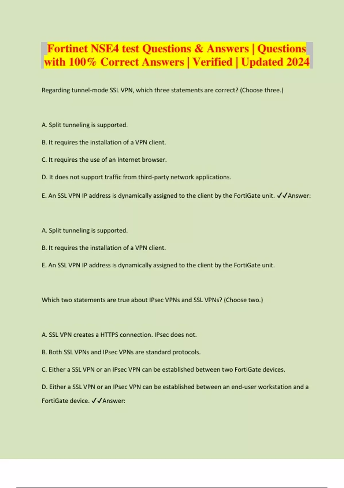 Fortinet NSE4 test Questions & Answers | Questions with 100% Correct Answers | Verified | Updated 2024