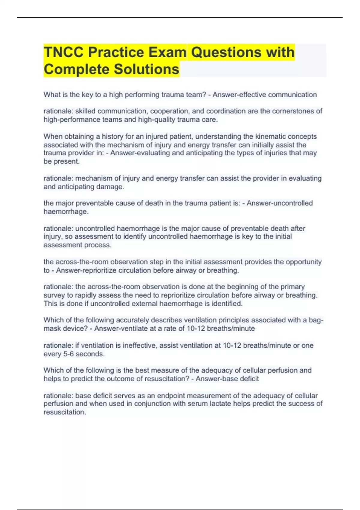 TNCC Practice Exam Questions with Complete Solutions