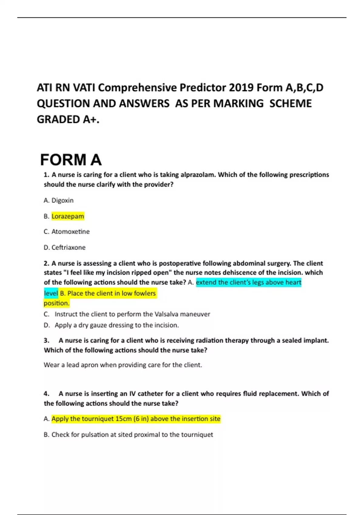 ATI RN VATI Comprehensive Predictor 2019 Form A,B,C,D QUESTION AND ANSWERS AS PER MARKING SCHEME G R ADED A+.