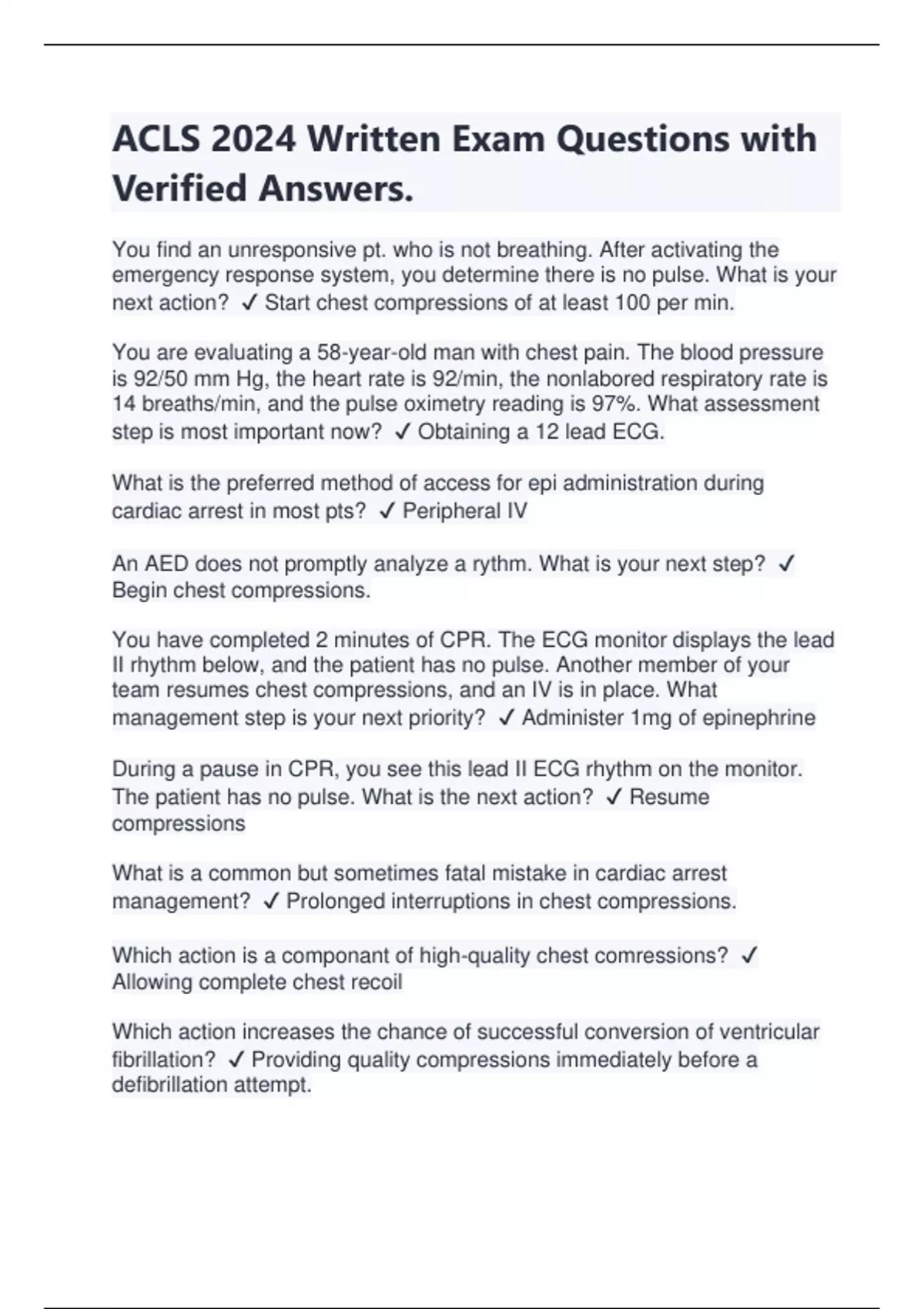 ACLS 2024 Written Exam Questions with Verified Answers.