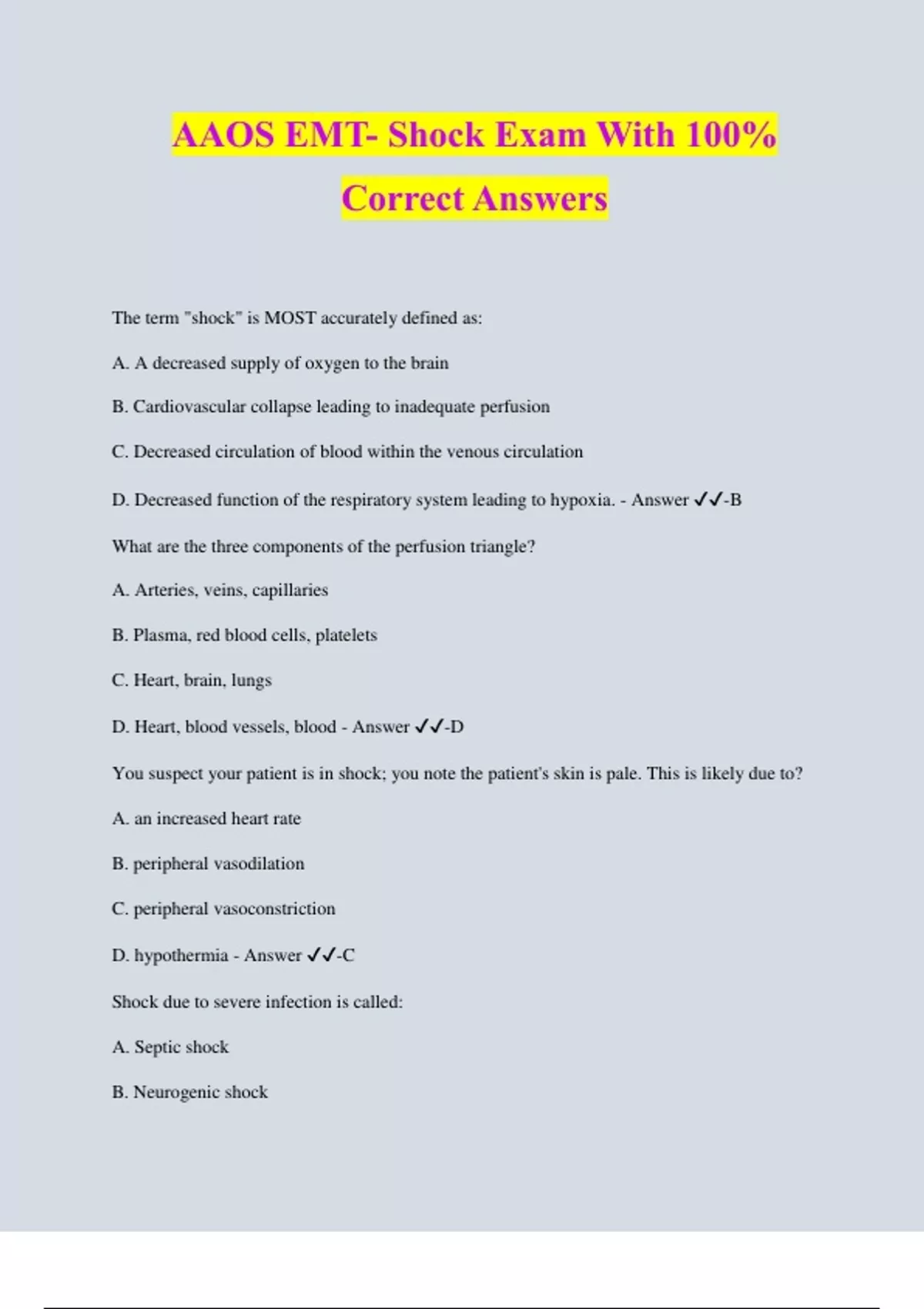 AAOS EMT- Shock Exam With 100% Correct Answers