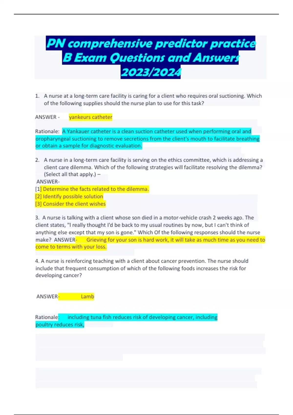 PN COMREHENSIVE PREDICTOR PRACTICE B EXAM 150 QUESTIONS AND ANSWERS 2023/2024