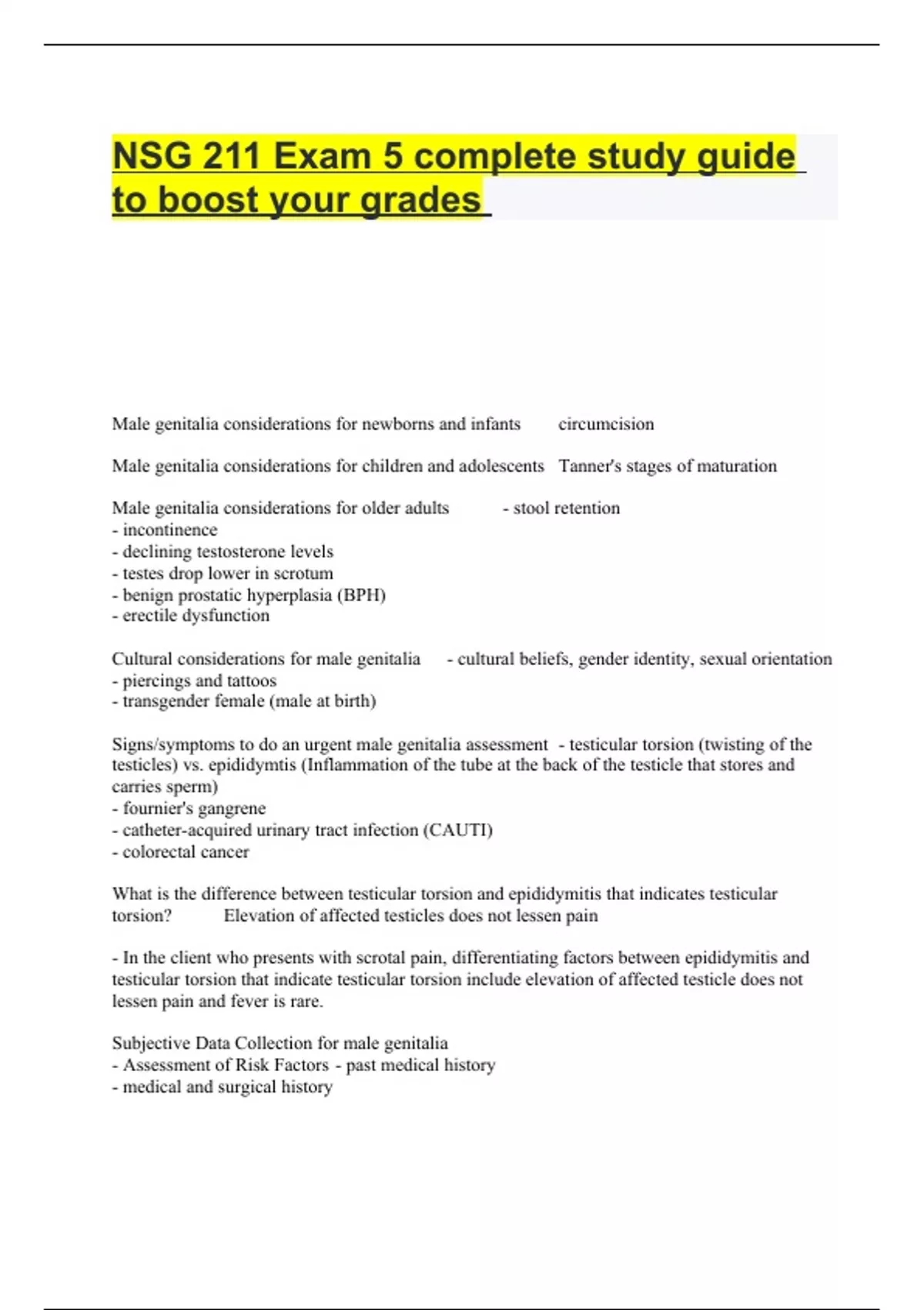 Comprehensive physical assessment of male genitalia - utilize inspection and palpation as