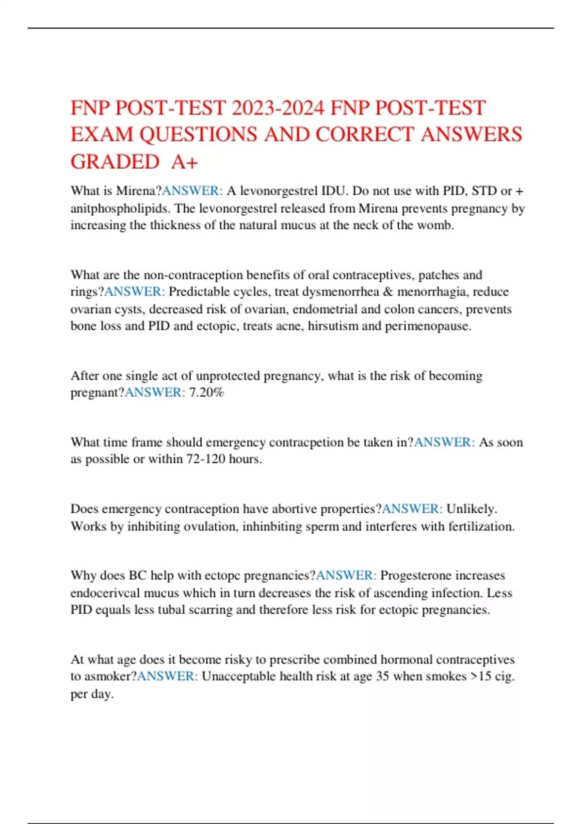 FNP POST-TEST FNP POST-TEST EXAM QUESTIONS AND CORRECT ANSWERS GRADED A