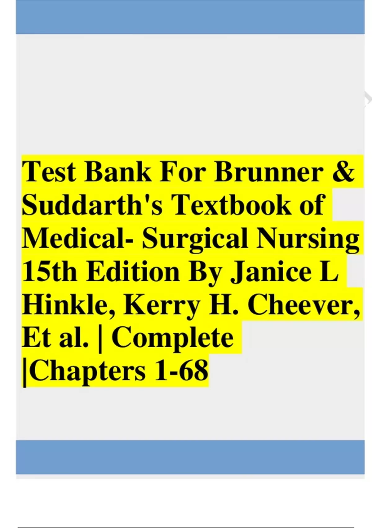 Test bank for brunner suddarth's textbook of medical surgical nursing 15th edition hinkle Latest Update