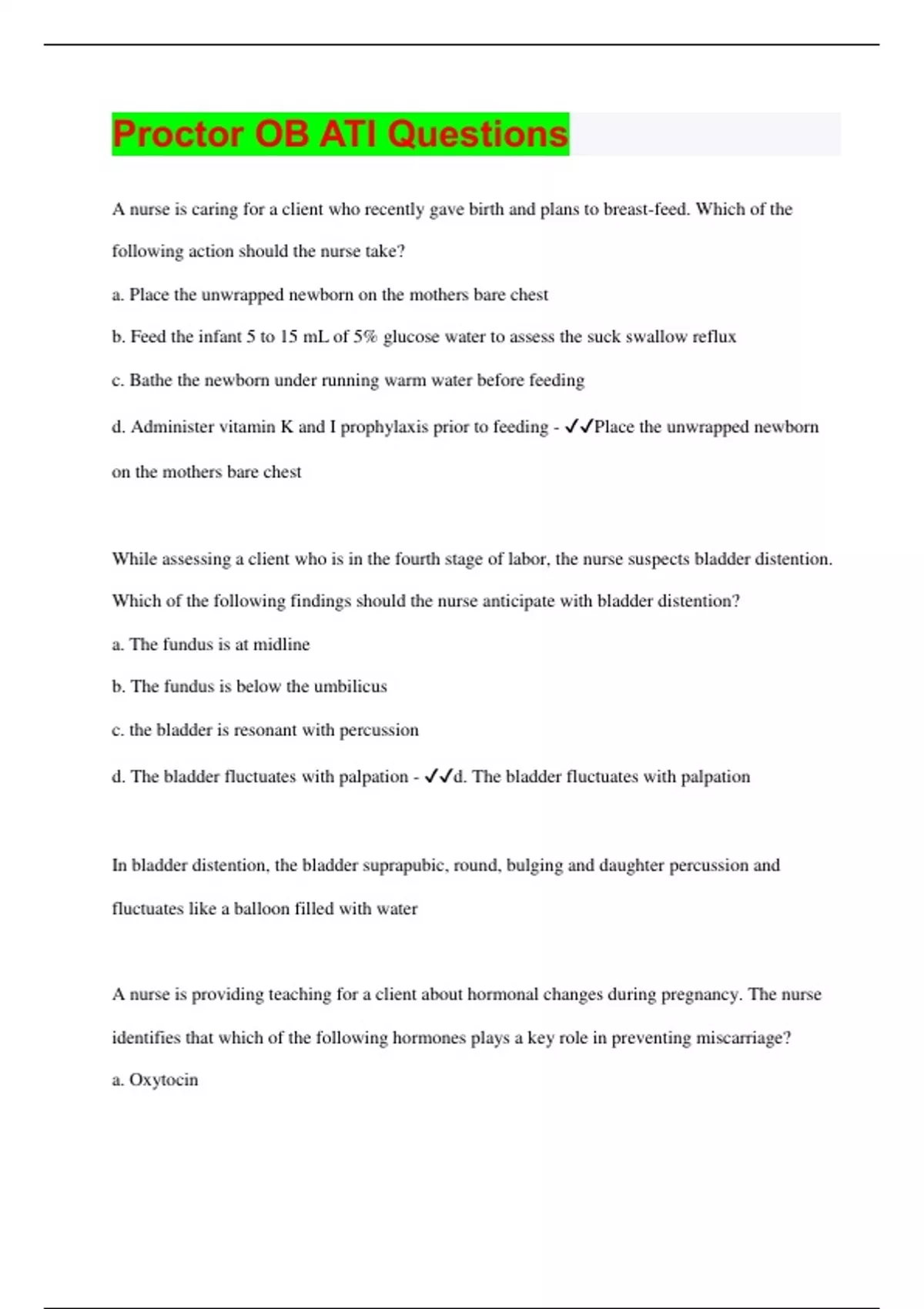 Proctor OB ATI Questions with 100% Correct Answers | Latest Update 2024 | Verified