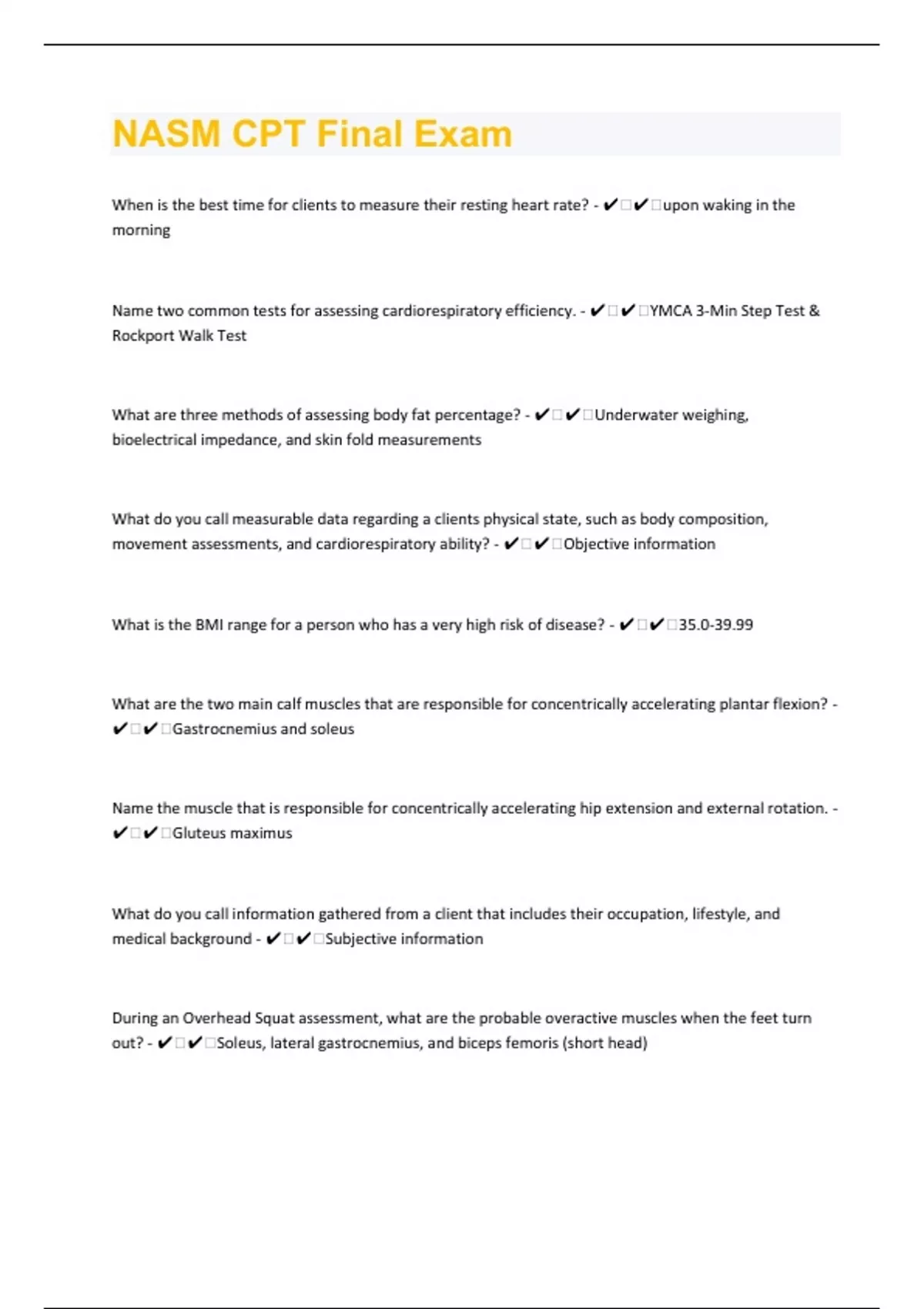 NASM CPT 199 Final Exam Questions And Answers
